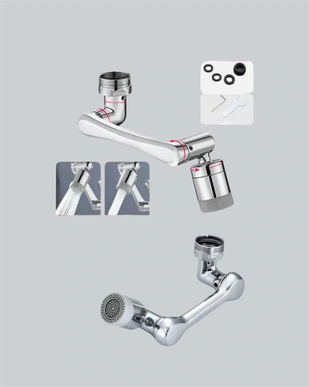 1080° dönebilen musluk başlığı, günlük temizlik ve hijyen işlemlerini çok daha kolay ve konforlu hâle getirmek için tasarlanmış yenilikçi bir üründür. Geleneksel muslukların sabit yapısına kıyasla 3 eklemli robotik kol tasarımı sayesinde başlık yukarı, aşağı, sağa ve sola tamamen serbest şekilde hareket eder. Bu sayede suyu dilediğiniz açıya yönlendirebilir, lavabonun en ulaşılmaz noktalarını bile zahmetsizce temizleyebilirsiniz.Başlık, iki farklı su akış moduna sahiptir. Köpük Akışı Modu, yumuşak ve geniş bir su akışı sunarak el yıkama, yüz temizliği ve hassas işlemler için idealdir. Güçlü Sprey Modu ise yüksek basınçlı akışıyla kirleri, artıkları ve yüzeylerdeki birikintileri kolayca temizler. Modlar arasında geçiş yapmak için sadece başlık üzerindeki halkayı döndürmeniz yeterlidir.Ürün, su tasarrufu sağlayan özel iç yapıya sahiptir. Akışı optimize eder, gereksiz su tüketimini ortadan kaldırır ve verimli kullanım sunar. Özellikle mutfakta sebze–meyve yıkarken, banyoda el yüz temizliğinde veya lavabonun köşe bölgelerinde günlük temizlik yaparken büyük avantaj sağlar.Çoğu musluk tipiyle uyumlu yapısı sayesinde kurulumu oldukça basittir. Kutudan çıkan adaptörlerle farklı bağlantı sistemlerine dakikalar içinde monte edilebilir ve herhangi bir teknik bilgi gerektirmez.Modern tasarımı, fonksiyonelliği ve pratik kullanımıyla hem mutfak hem banyo hem de ofis lavaboları için ideal bir çözümdür. Günlük hayatı kolaylaştıran bu esnek musluk başlığı, yaşam alanlarını daha konforlu ve işlevsel hâle getirir.