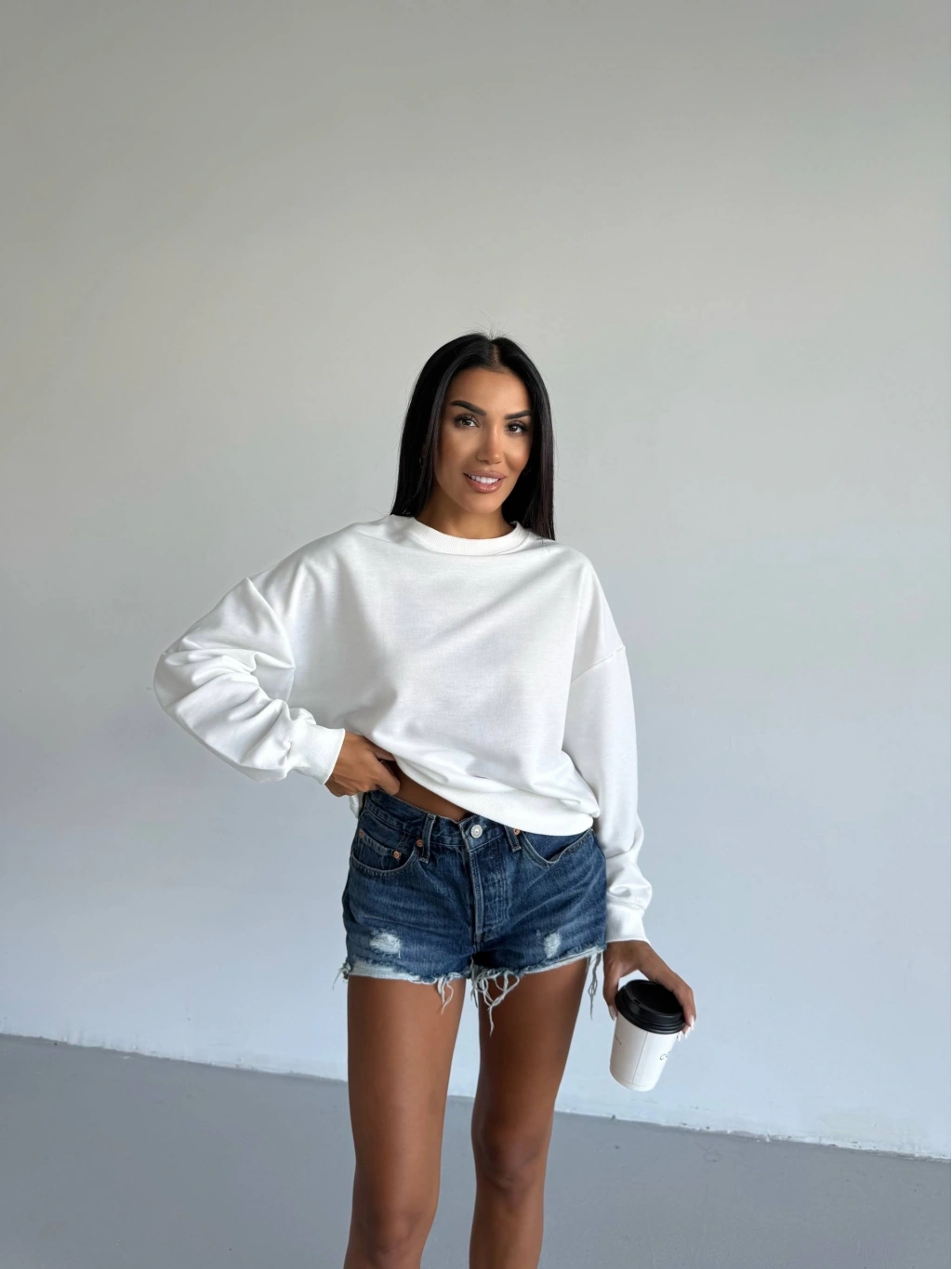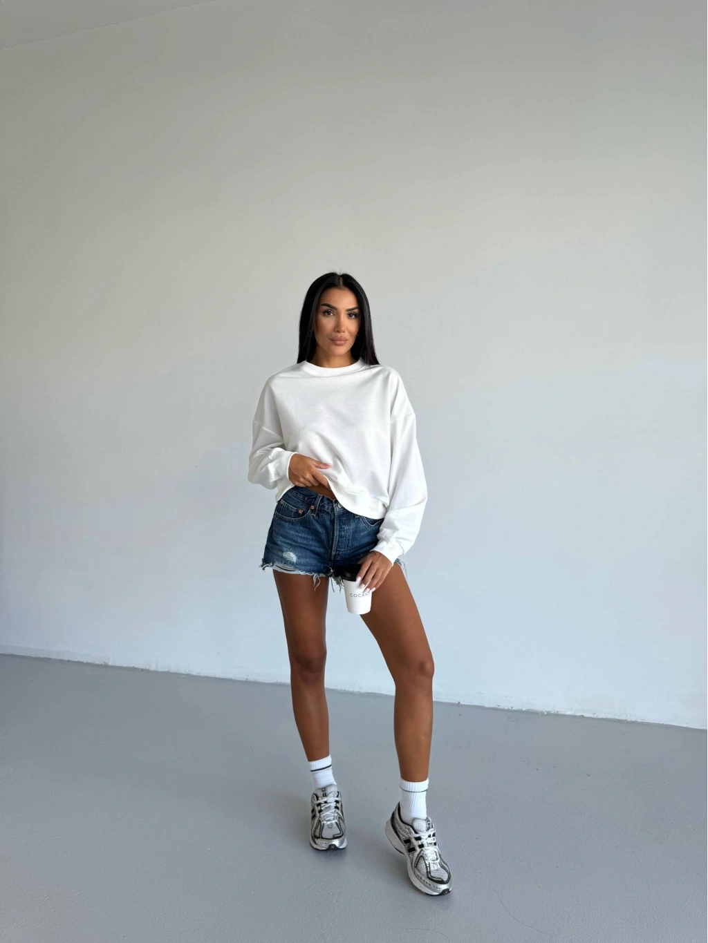 • 2 iplik bisiklet yaka sweat beyaz f2339
