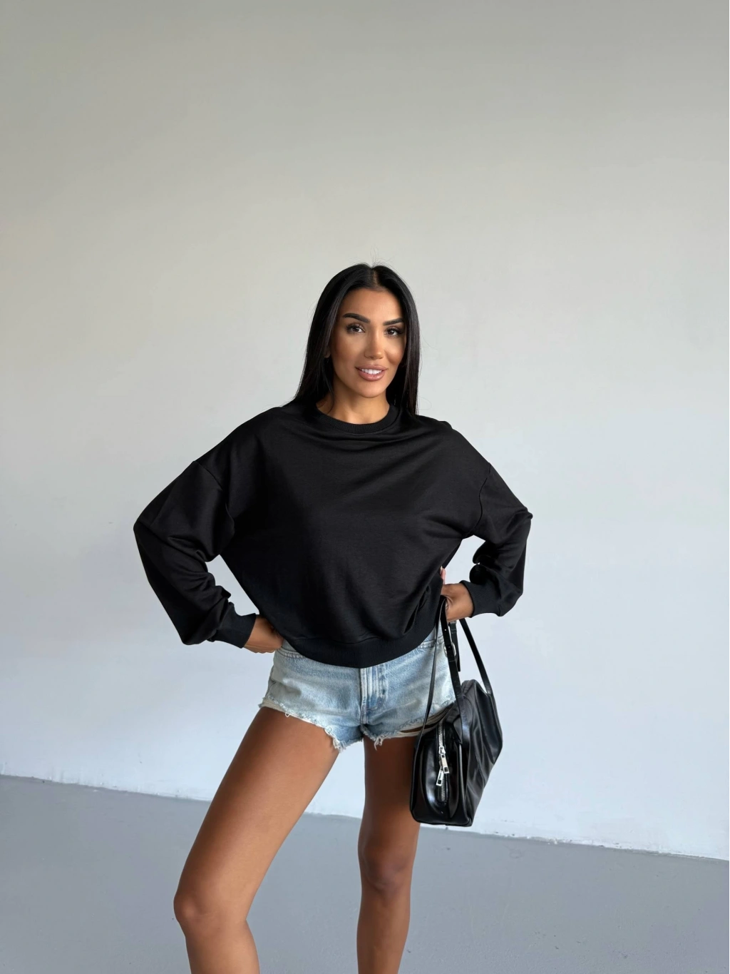2 iplik bisiklet yaka sweat siyah f2339