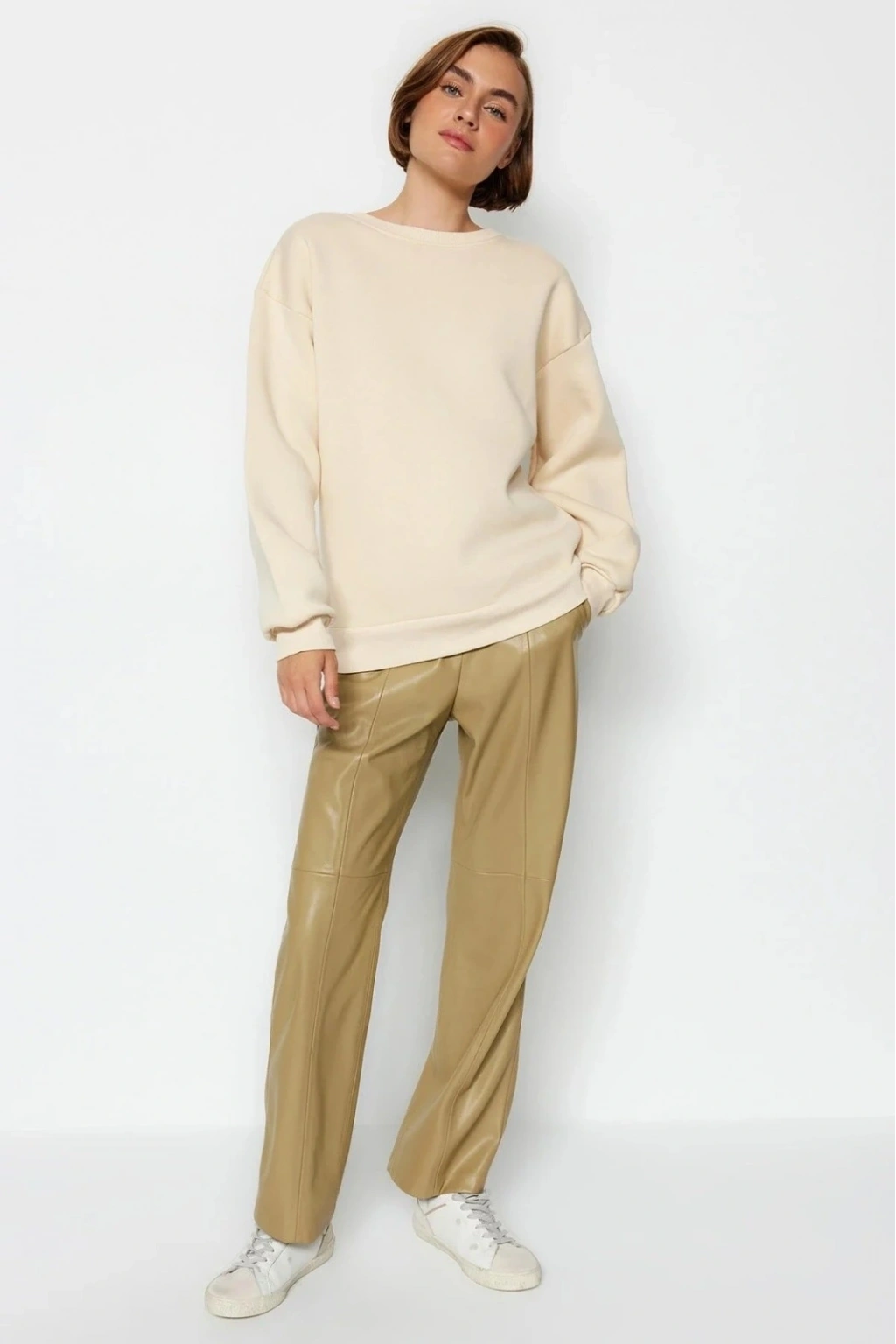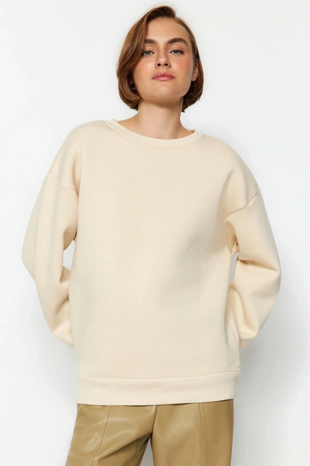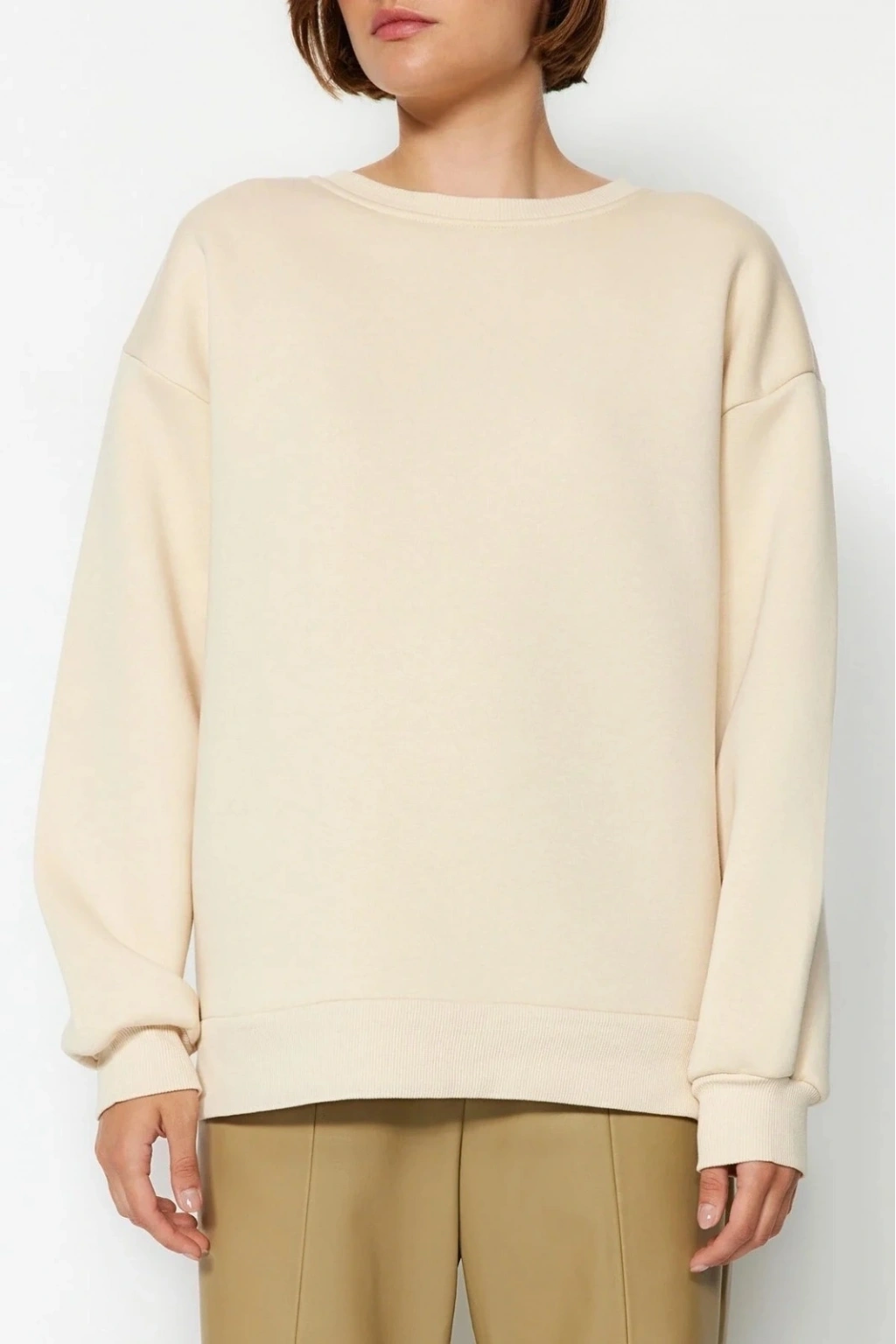 olan 3 iplik şardonlu bisiklet yaka sweatshirt bej, şıklığı ve rahatlığı bir arada sunar.