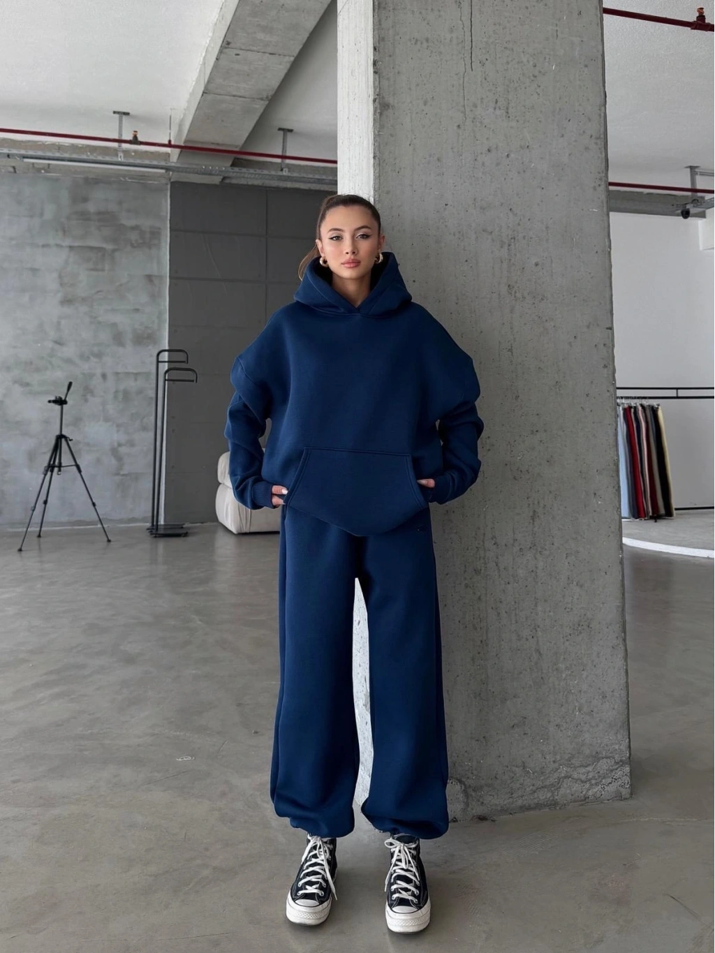 şıklığı ve rahatlığı bir araya getiren 3 iplik şardonlu kapşonlu sweatshirt lacivert ile tarzınızı tamamlayın.
