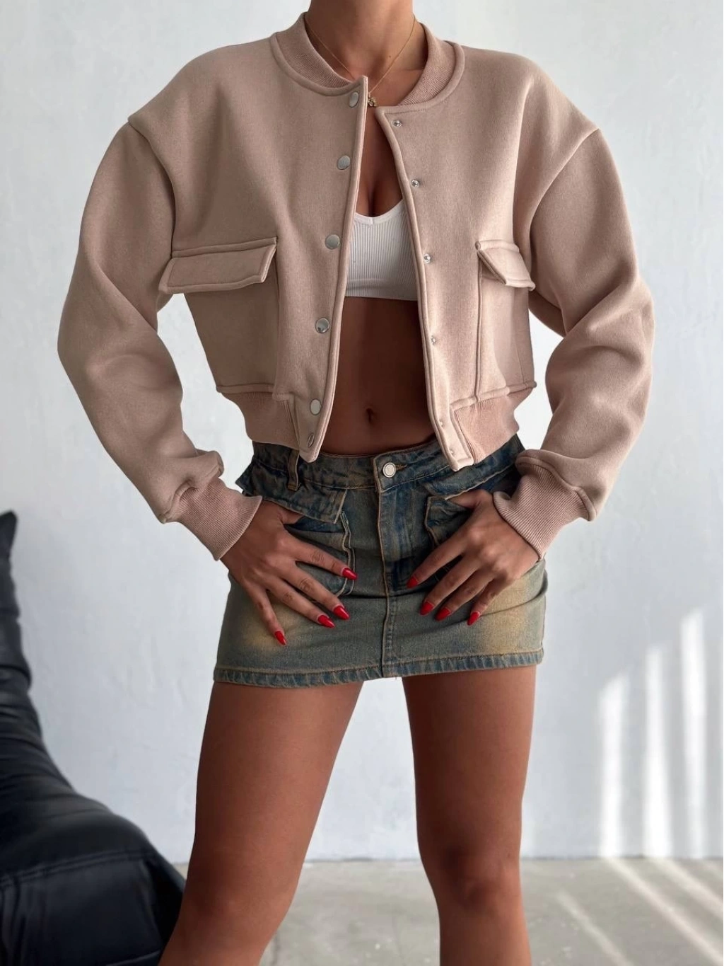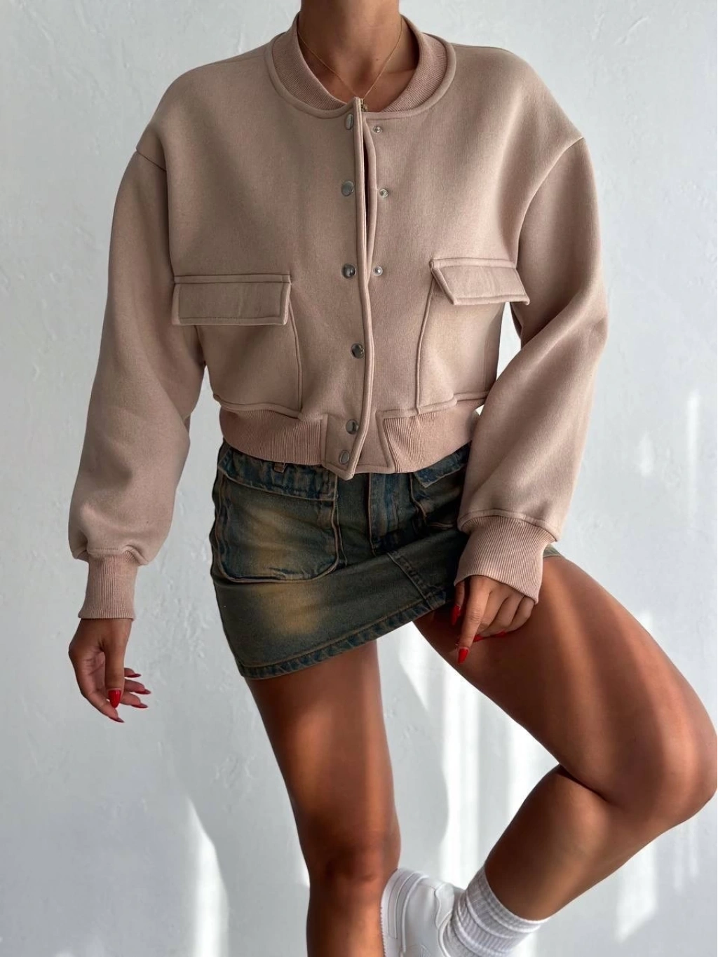 3 iplik şardonlu Önü çıtçıtlı cepli ceket bej f2226, kadın giyim kategorisinde şıklık ve rahatlık arayanlar için ideal bir seçenektir.