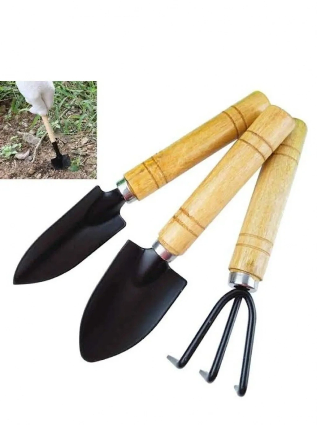 1 Adet 3 Parça Bitki Hobi Seti - Bahçe Saksı Sukulent Bakım Çapa-Tırmık-Kürek
