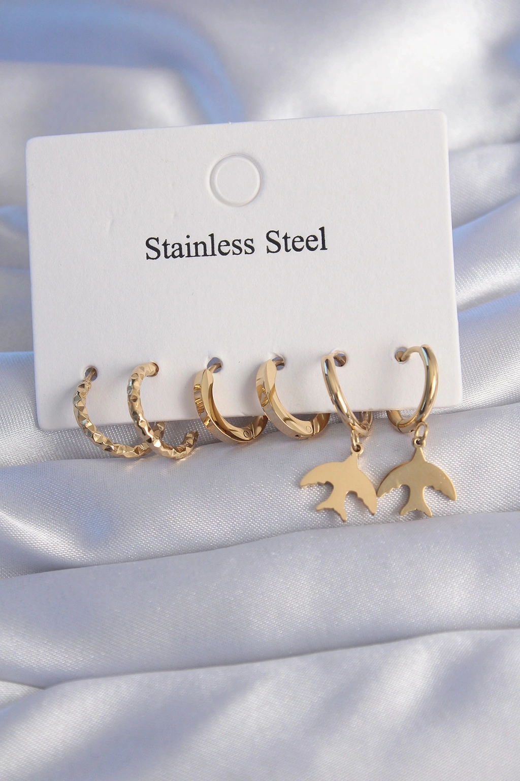 316L Çelik Gold Renk Oval Tasarım Kuş Model Küpe Seti