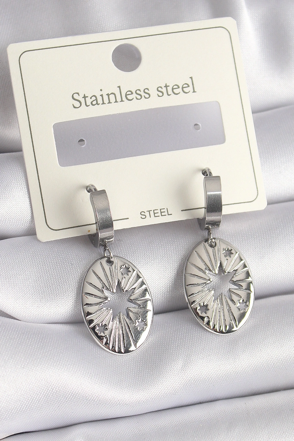 316L Çelik Gümüş Renk Kutup Yıldızı İşleme Kadın Küpe