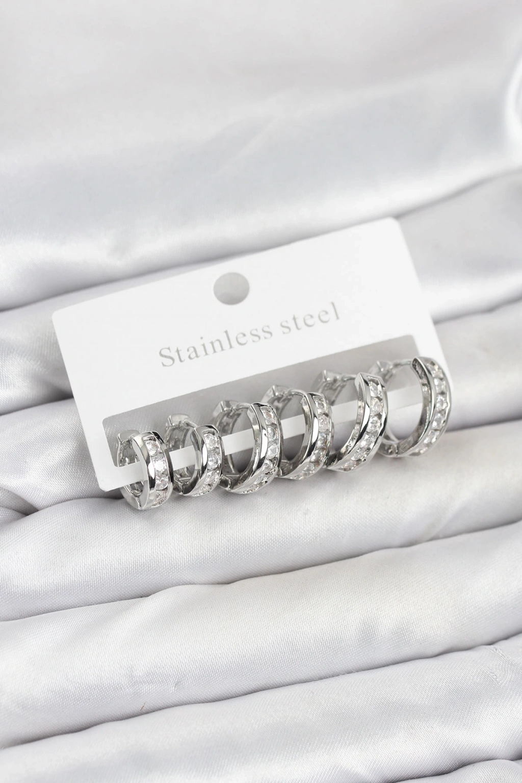 316L Çelik Gümüş Renk Su Yolu Halka Küpe Seti
