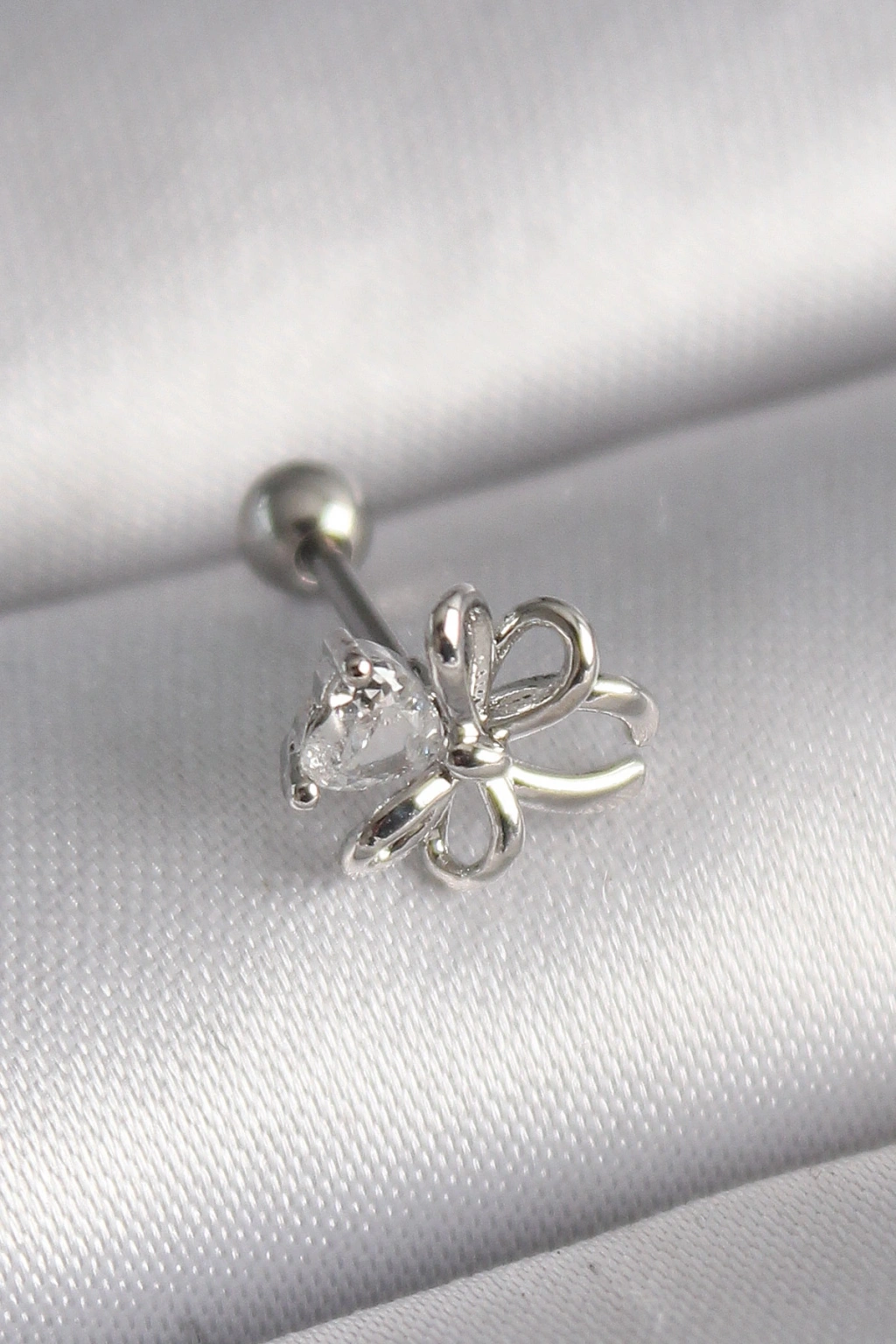 316L Çelik Gümüş Renk Zirkon Taş Detay Kurdele Model Tragus Piercing