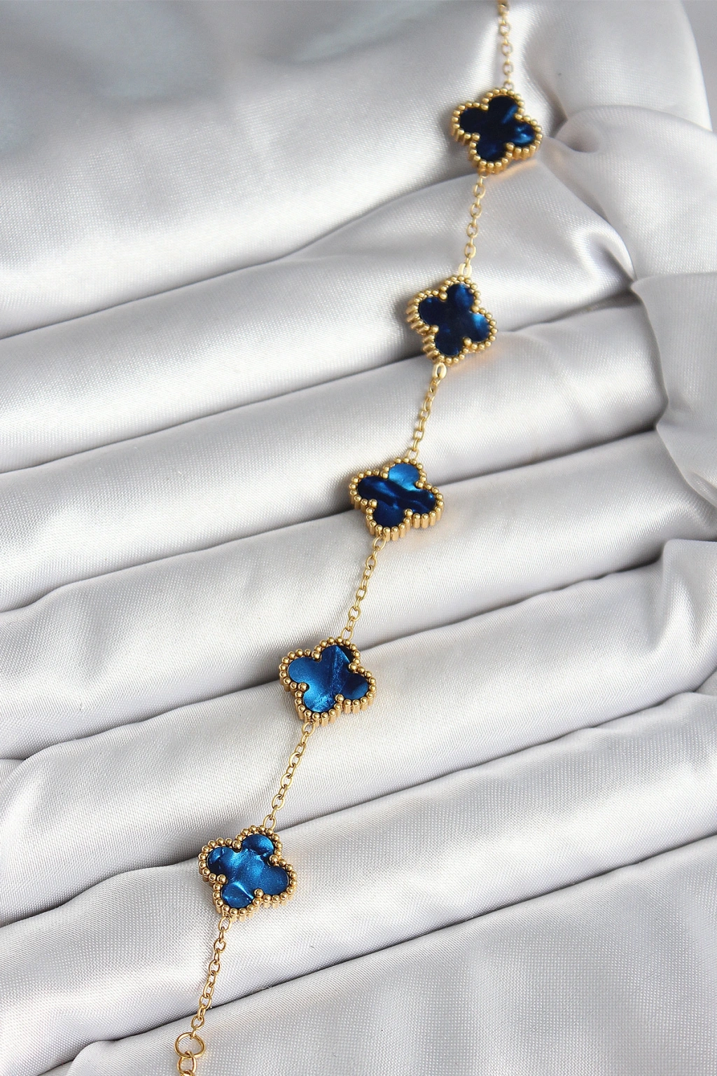 316L Çelik Sedefli Lacivert Gold Renk Yonca Kadın Bileklik