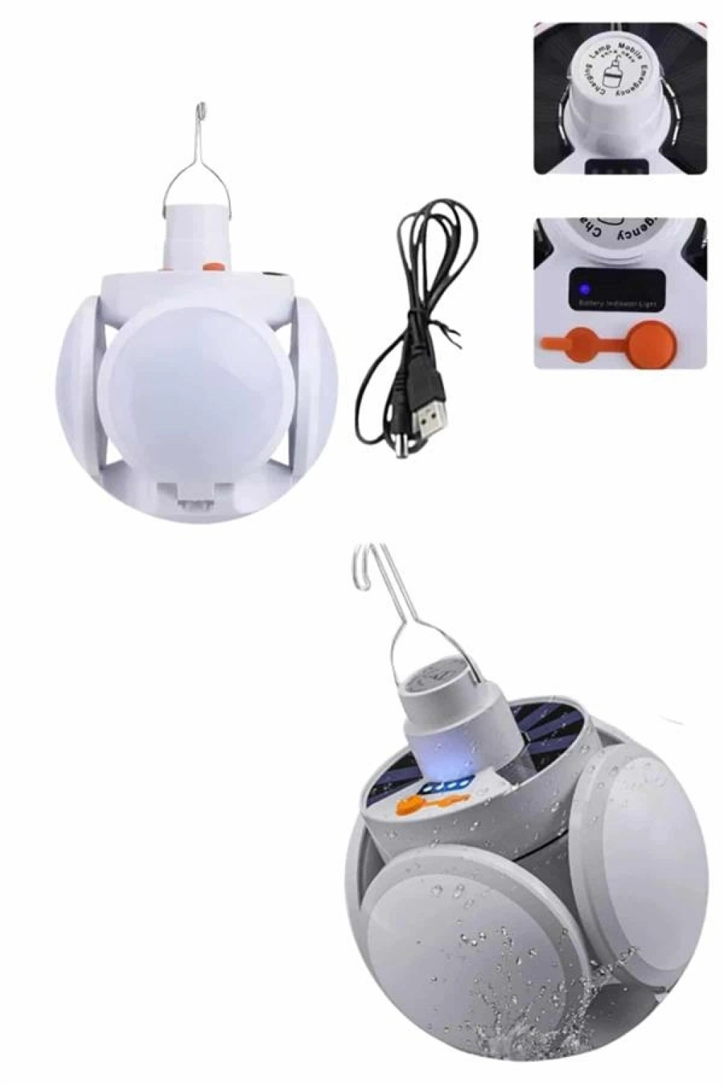 Solar Güneş Enerjisi ve USB Şarjlı 5 Kanatlı Taşınabilir Lamba – Çok Fonksiyonlu, Su Geçirmez ve Enerji Verimli AydınlatmaAçık hava etkinliklerinde, kamp gezilerinde veya acil durumlarda kullanabileceğiniz mükemmel bir taşınabilir aydınlatma çözümü arıyorsanız, Solar Güneş Enerjisi ve USB Şarjlı 5 Kanatlı Lamba tam size göre! Bu pratik lamba, güneş enerjisi ile şarj olabileceği gibi, USB ile de kolayca şarj edilebilir ve her koşulda güvenilir bir ışık kaynağı sunar.5 kanatlı tasarımı, ışığın yayılmasını etkili bir şekilde sağlayarak geniş alanları aydınlatmanızı mümkün kılar. Katlanabilir yapısı sayesinde ışık açısını ihtiyacınıza göre ayarlayabilirsiniz. Böylece karanlık alanlarda daha geniş bir alanı rahatlıkla aydınlatabilirsiniz.Güneş paneli ile doğa dostu bir enerji kaynağı kullanabileceğiniz gibi, USB ile şarj etme seçeneği de sunan bu lamba, her ortamda pratik kullanım imkânı sağlar. Solar şarj ile çevreye duyarlı bir şekilde enerji elde ederken, USB şarj özelliği sayesinde hızlı ve pratik bir şekilde enerji depolayabilirsiniz.Su geçirmez IP65 özelliği, dış mekanlarda kullanım için ekstra dayanıklılık sunar. Yağmurda veya nemli koşullarda bile güvenle kullanılabilir. Ürün, 45 LED ışık kaynağı ile karanlık ortamlarda yüksek kaliteli ışık sağlar ve 6500K renk sıcaklığı ile net ve parlak bir aydınlatma sunar.Teknik Özellikler:Güneş Paneli: 5.5V polikristal silikon güneş paneliPil: 18650 lityum pil, 2400mAhIşık Kaynağı: 45 LEDÇalışma Süresi: 6-8 saatŞarj Süresi: Solar şarj için 8 saat / USB şarj ile 6 saatŞarj Yöntemi: Solar şarj (DC 3.5V) / USB şarj (voltaj 4.5V)Su Geçirmezlik: IP65Renk Sıcaklığı: 6500KÜrün Boyutu: 14 cm * 11.5 cmPaket İçeriği:1 Adet 5 Kanatlı Solar Pratik LambaAcil durumlarda, kamp gezilerinde veya açık hava etkinliklerinde güvenle kullanabileceğiniz bu solar lamba, size her zaman güvenli, verimli ve çevre dostu bir ışık kaynağı sunar. Hem güneş enerjisiyle hem de USB ile şarj edilebilen bu pratik aydınlatma aracı, her koşulda size yardımcı olur.