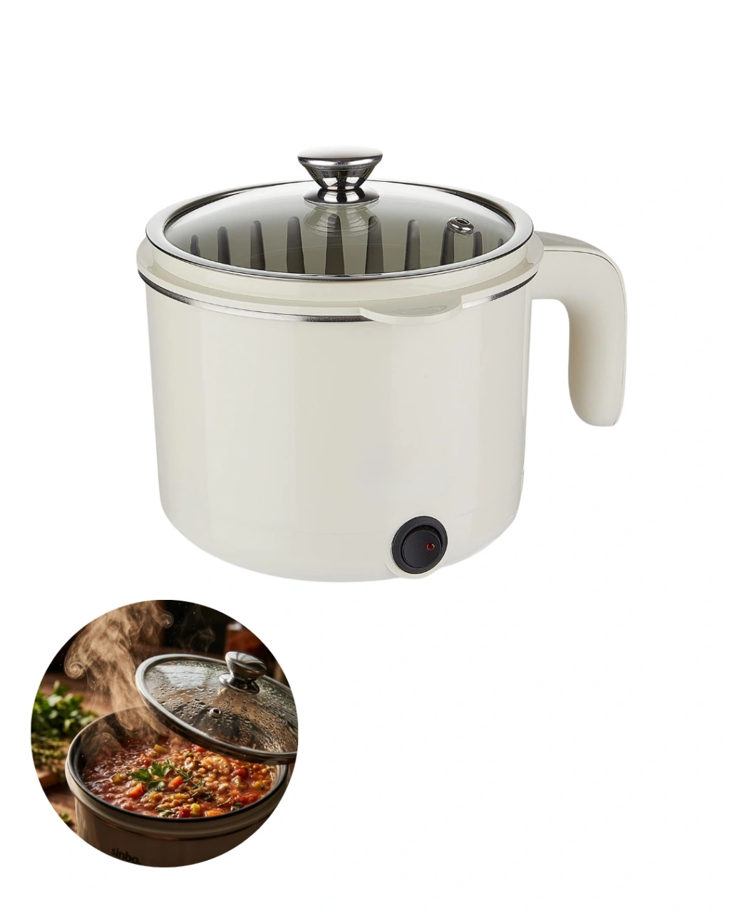 Pratik ve hızlı yemek hazırlamak isteyenler için tasarlanan çok amaçlı elektrikli pişirici, mutfakta zamandan tasarruf etmenizi sağlayan kullanışlı bir mutfak yardımcısıdır. Kompakt tasarımı sayesinde mutfakta fazla yer kaplamaz ve günlük yemek hazırlıklarını oldukça kolay hale getirir. Farklı pişirme seçenekleri sayesinde birçok yemeği tek bir cihaz ile hazırlayabilirsiniz.1 litre kapasiteye sahip olan bu elektrikli pişirici, özellikle küçük mutfaklar, öğrenci evleri, ofis kullanımı ve pratik yemek hazırlamak isteyen kullanıcılar için oldukça ideal bir çözümdür. Tek cihaz ile çorba, pilav, makarna, sebze yemekleri ve yumurta haşlama gibi birçok farklı yemek hazırlayabilirsiniz. Ayrıca cihaz ile birlikte gelen buharda pişirme tepsisi sayesinde sebzeleri sağlıklı bir şekilde buharda pişirmek de mümkündür.Paslanmaz gizli rezistans sistemi sayesinde ısı daha dengeli şekilde dağıtılır ve yemekleriniz daha verimli bir şekilde pişer. Gizli rezistans yapısı aynı zamanda temizlik işlemini de kolaylaştırır. Geniş ağız tasarımı sayesinde iç hazneye kolayca ulaşabilir ve kullanım sonrasında rahat bir şekilde temizleyebilirsiniz.Temperli cam kapak tasarımı sayesinde yemeklerin pişme sürecini kolayca takip edebilirsiniz. Dayanıklı cam kapak yapısı hem güvenli hem de uzun ömürlü kullanım sağlar. Ayrıca kapak üzerinde bulunan buhar çıkış noktası, pişirme sırasında oluşan buharın dengeli şekilde dışarı çıkmasına yardımcı olur.Cihaz üzerinde bulunan ışıklı açma kapama düğmesi kullanım sırasında kolay kontrol sağlar. Tek tuş ile cihazı çalıştırabilir ve yemek hazırlama işlemini hızlı bir şekilde başlatabilirsiniz. Kullanıcı dostu tasarımı sayesinde herkes rahatlıkla kullanabilir.Aşırı ısınma ve susuz çalışmayı önleyen emniyet sistemi sayesinde güvenli kullanım sunar. Bu güvenlik sistemi cihazın uzun ömürlü kullanımını destekler ve mutfakta güvenli bir pişirme deneyimi sağlar.Kompakt boyutu, çok amaçlı kullanım özellikleri ve pratik tasarımı sayesinde bu elektrikli pişirici; ev, öğrenci evi, ofis ve küçük mutfaklar için ideal bir yardımcıdır. Günlük yemek hazırlıklarını kolaylaştıran bu ürün ile pratik ve hızlı şekilde lezzetli yemekler hazırlayabilirsiniz.