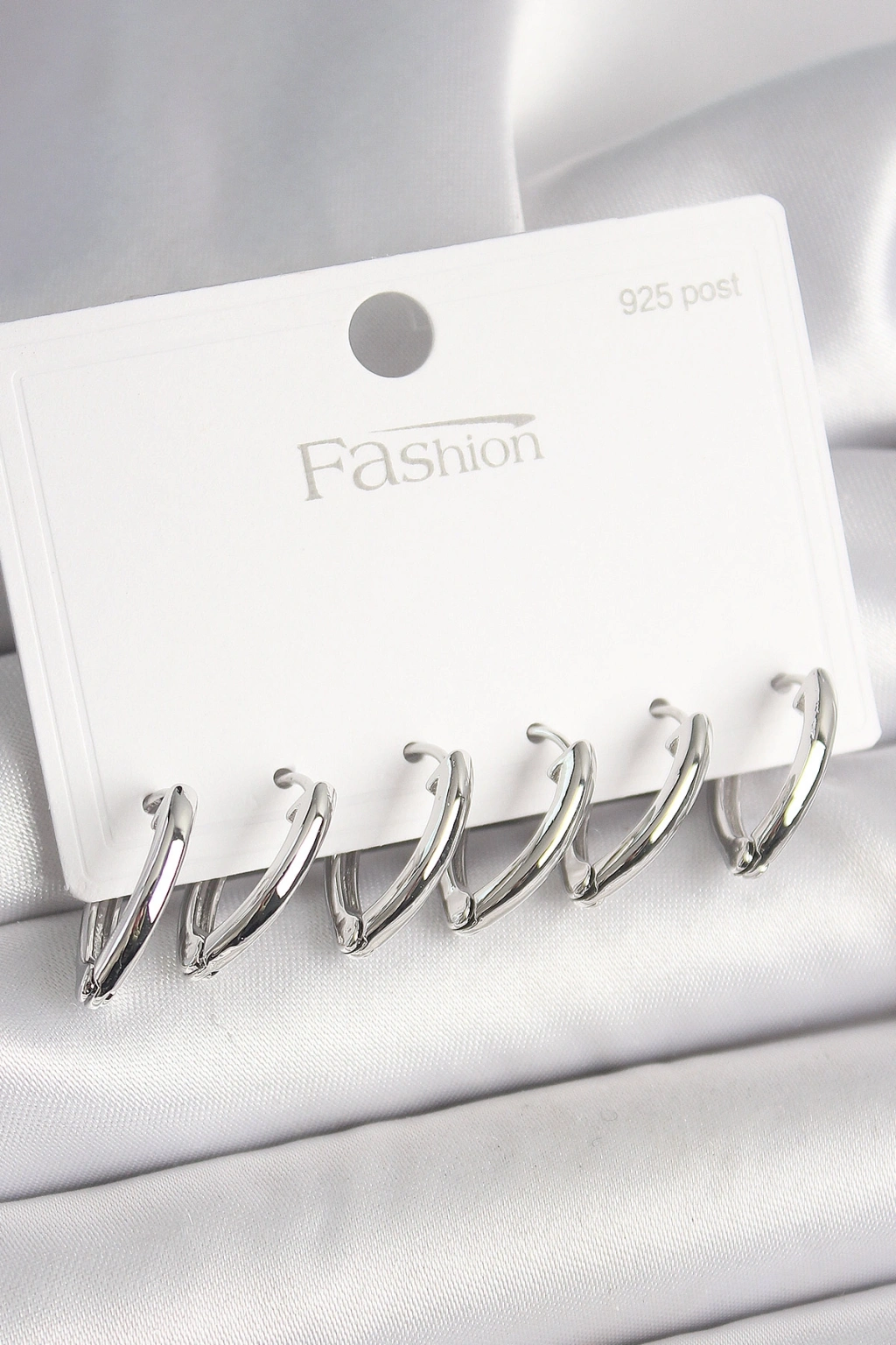 925 Ayar Gümüş Çivi Pirinç Gümüş Renk Üçgen Model Kadın Küpe Seti