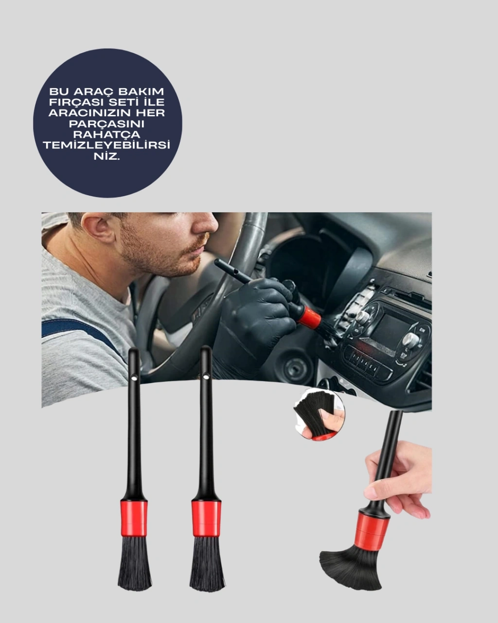 Bu araç bakım fırçası seti, hassas temizlik isteyen kullanıcılar için geliştirilmiştir. Yumuşak ve esnek kıllar, aracın tüm yüzeylerinde çizik bırakmadan temizlik imkânı sunar. 5 farklı boyut sayesinde, geniş alanlardan dar köşelere kadar her noktaya ulaşmak mümkündür.Özellikle jantlar, ön panjur, havalandırma delikleri ve logo çevreleri gibi kir tutmaya meyilli alanlar için idealdir. Fırçaların özel yapısı sayesinde toz, kırıntı ve inatçı kirler kolayca giderilir.Her fırçanın sap kısmında delik mevcuttur, bu sayede askıya asarak saklanabilir. Setin toplam ağırlığı 260 gramdır ve taşıması kolaydır. Tüm binek araçlar, motosikletler ve ticari araçlarla uyumludur.