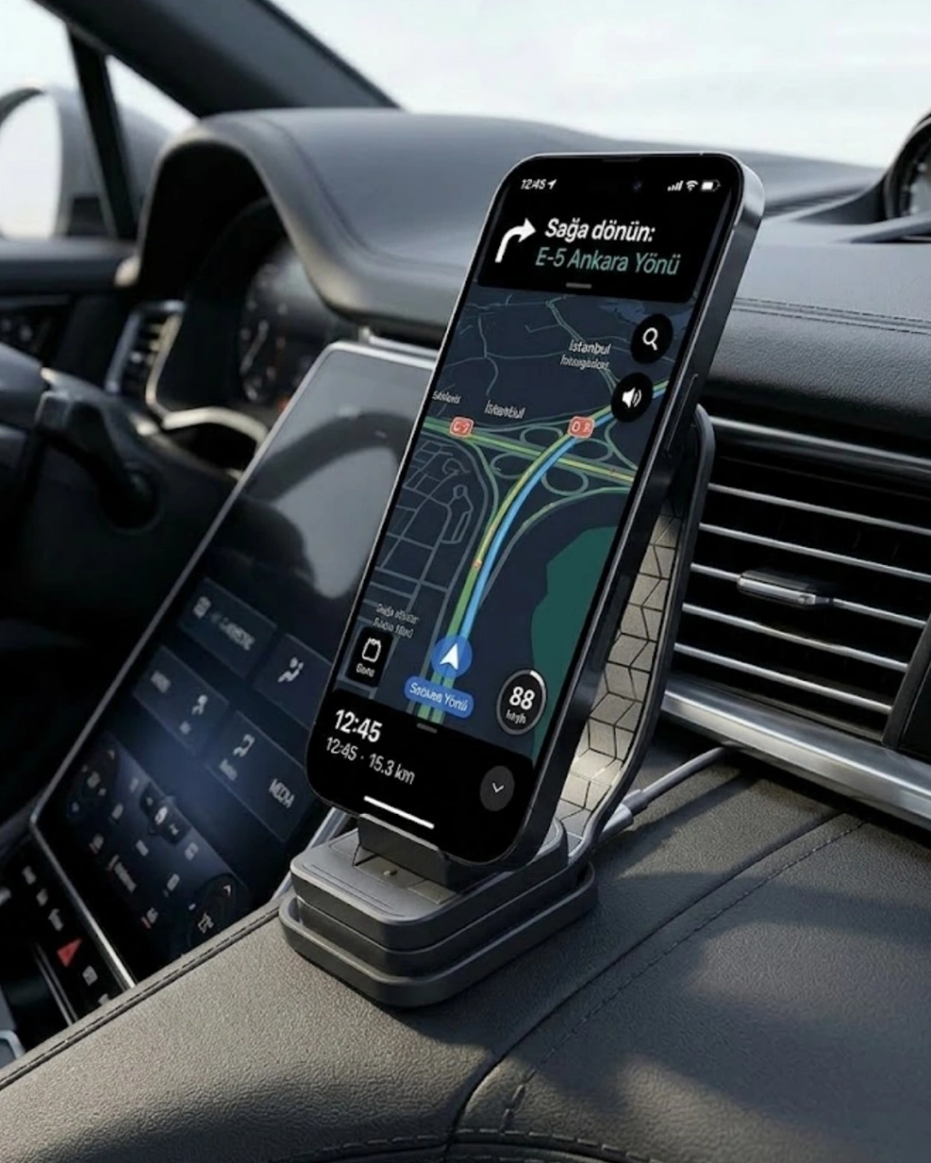 Araç telefon tutucu, telefonunuzu araç içinde sabitleyerek sürüş sırasında daha güvenli kullanım sağlayan kullanışlı bir üründür. Manyetik tasarımı sayesinde telefonunuzu hızlı ve kolay şekilde yerleştirebilirsiniz.360 derece dönebilen başlık mekanizması sayesinde telefonunuzu istediğiniz açıya ayarlayabilirsiniz. Bu özellik navigasyon kullanımını daha rahat hale getirir.Katlanabilir tasarımı sayesinde ürün farklı açılarda kullanılabilir ve gerektiğinde kompakt hale getirilebilir.Modern ve sade tasarımı sayesinde araç içi kullanım için ideal bir çözümdür.