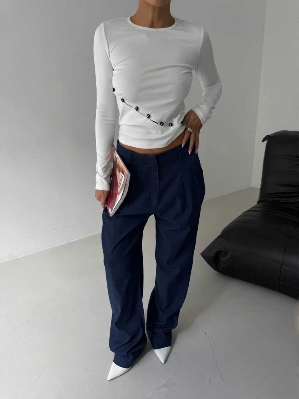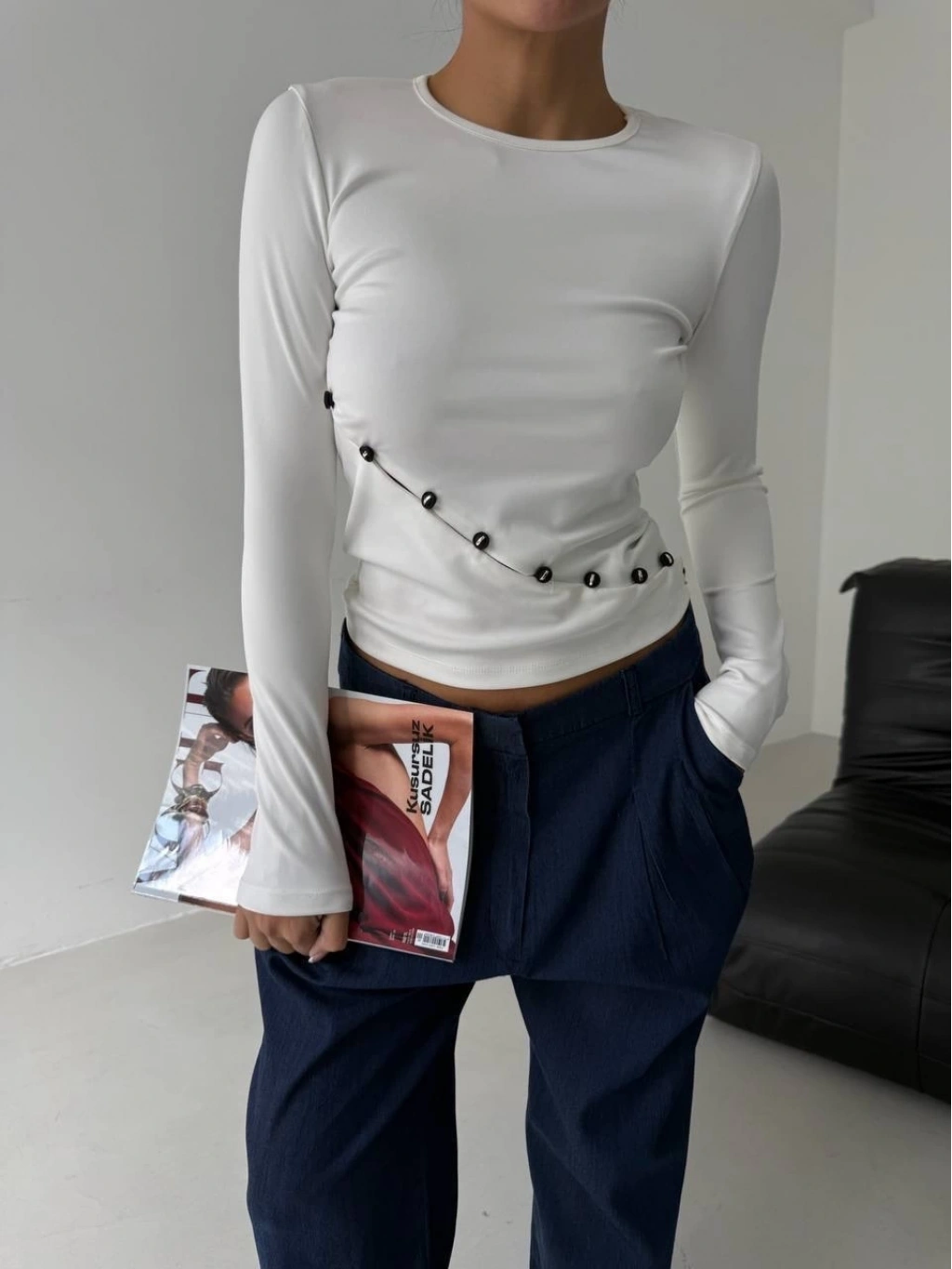 • Asimetrik alt detaylı bluz beyaz