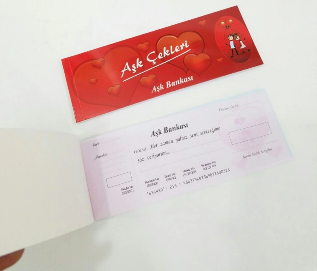 Aşk Çekinde hem kadınları hem de erkekleri ilgilendiren 40 adet aşk çeki bulunuyor, çeklerde yazan sözlerden birkaç örneği aşağıda bulabilirsiniz. 8 adet çek ise boş, yani tam 8 adet de açık çekiniz var. Bunları da dikkatlice kullanmanızı, ödeyemeyeceğiniz borçların altına girmemenizi tavsiye ederiz.