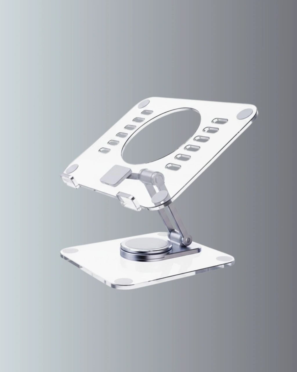 Bu şeffaf tablet standı, aynı zamanda ısı dağılımını destekleyen açık tasarıma sahiptir. Tablet ve mini dizüstü bilgisayarların daha iyi hava almasını sağlayarak aşırı ısınmayı önlemeye yardımcı olur. Çok pozisyonlu destek yapısı sayesinde cihazınızı farklı kullanım senaryolarına göre ayarlayabilirsiniz. Uzun süreli kullanımda performansın korunmasına katkı sağlar.