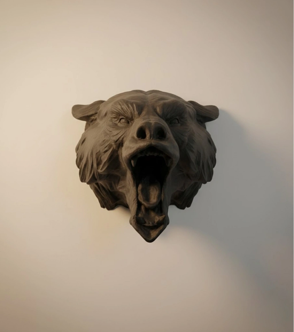 Ayı Tasarım Siyah 3D Duvar Heykeli