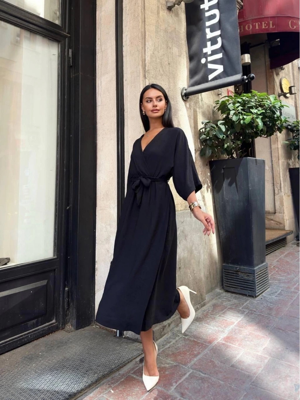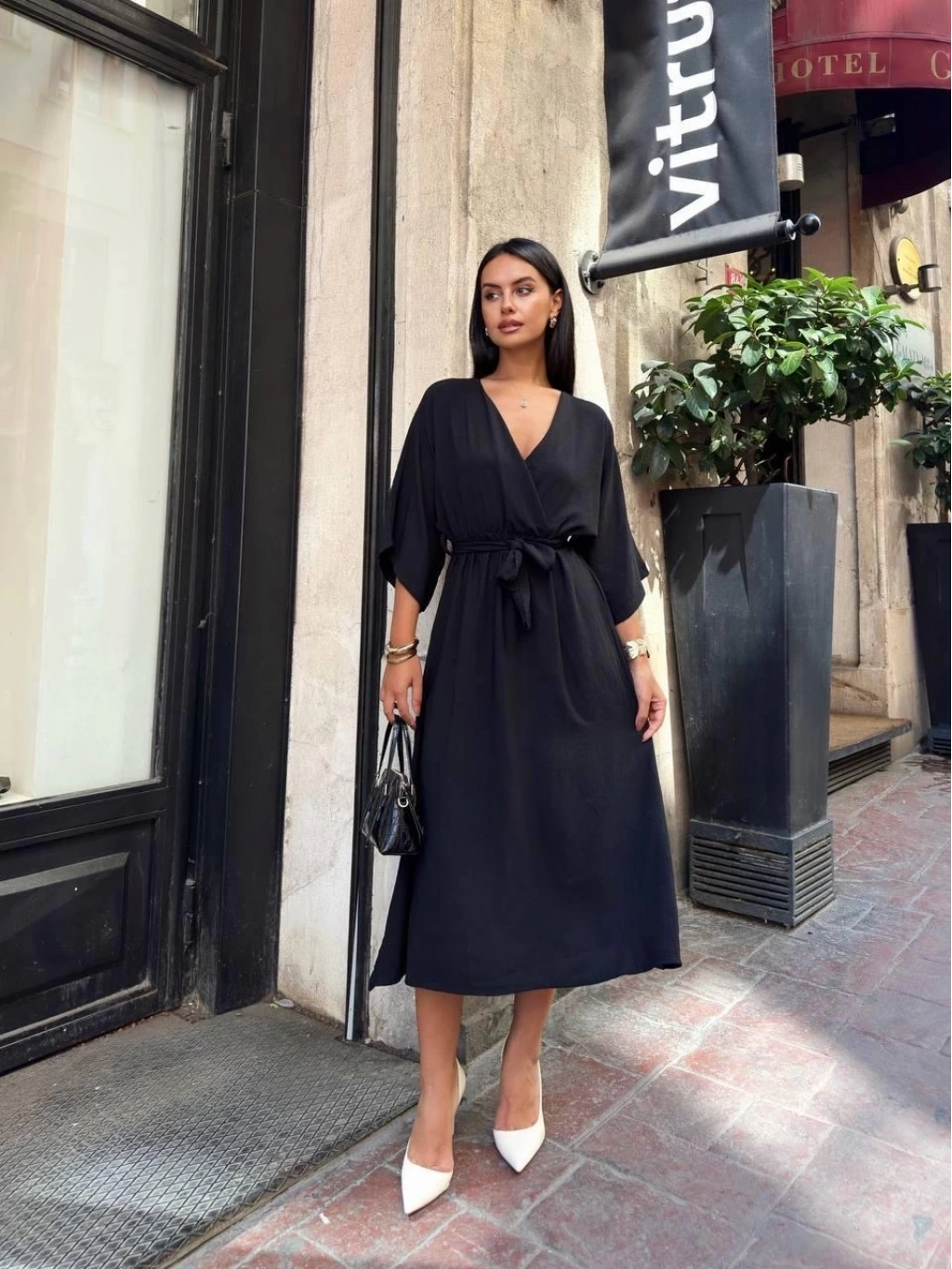 Şıklık ve konforu bir arada arayan kadınların tercihi olan KAZAX Ayrobin midi elbise, gardırobunuzun vazgeçilmez parçalarından biri olmaya aday!