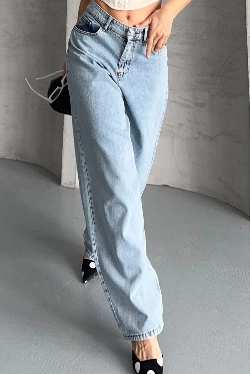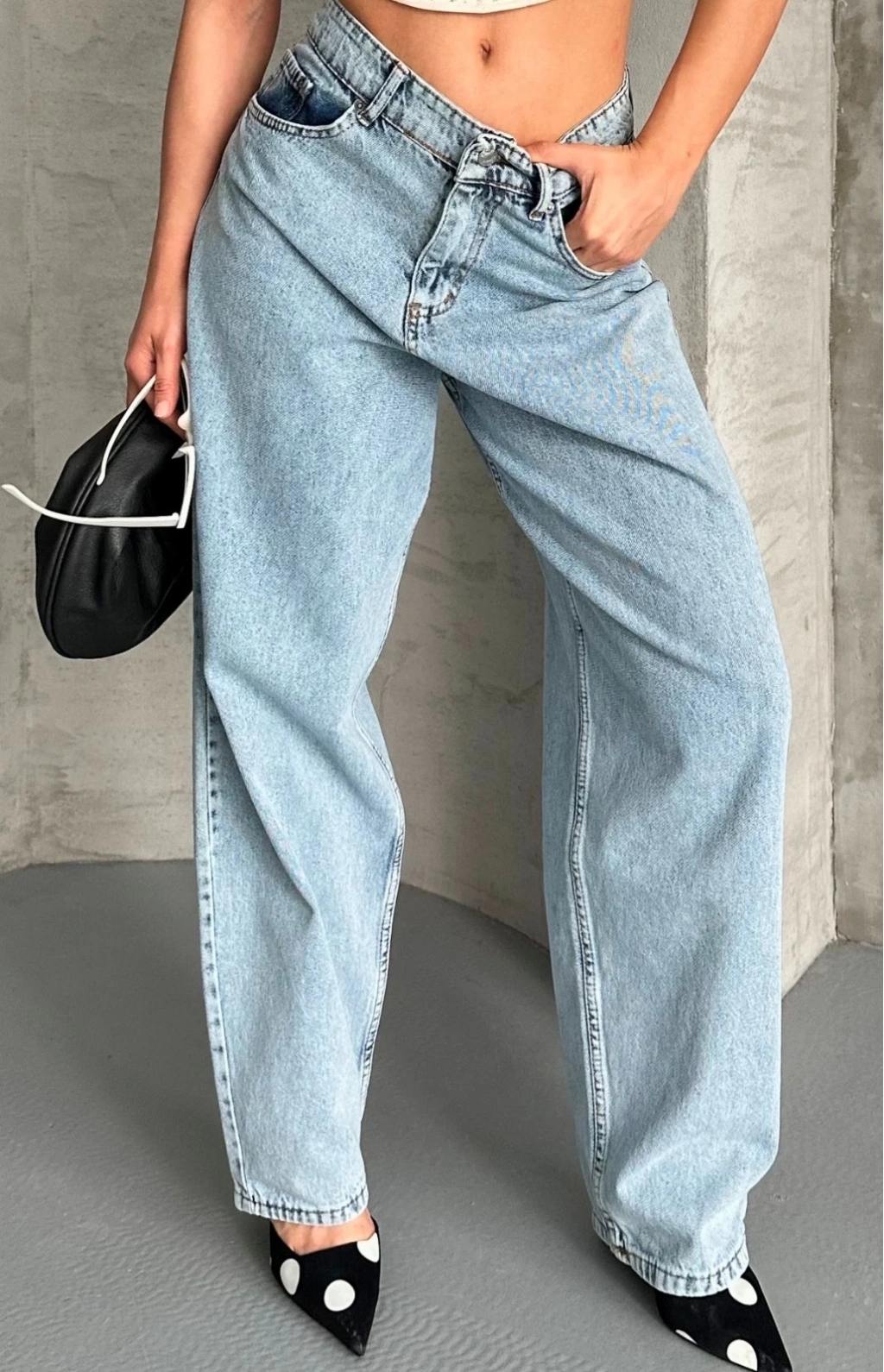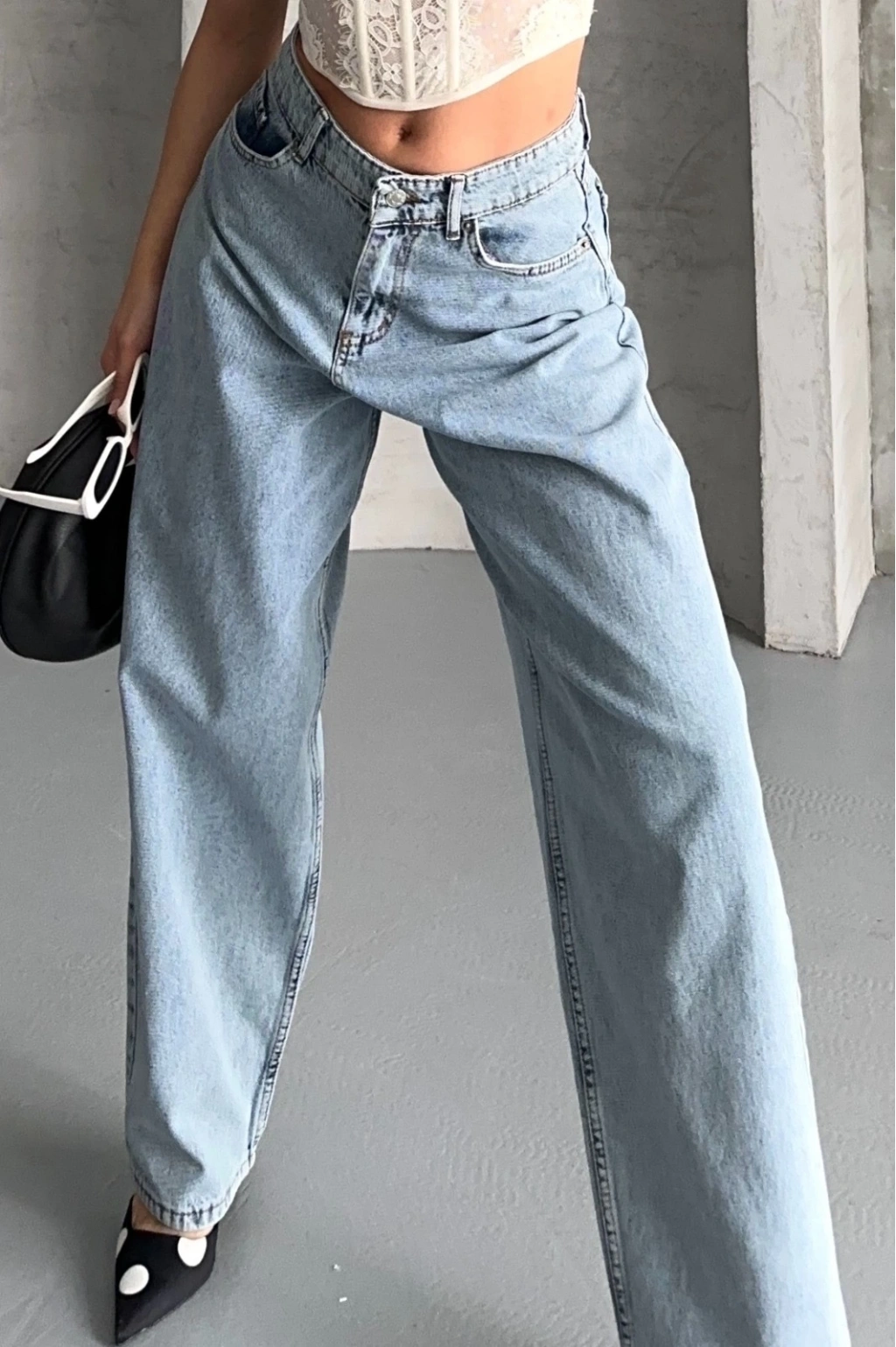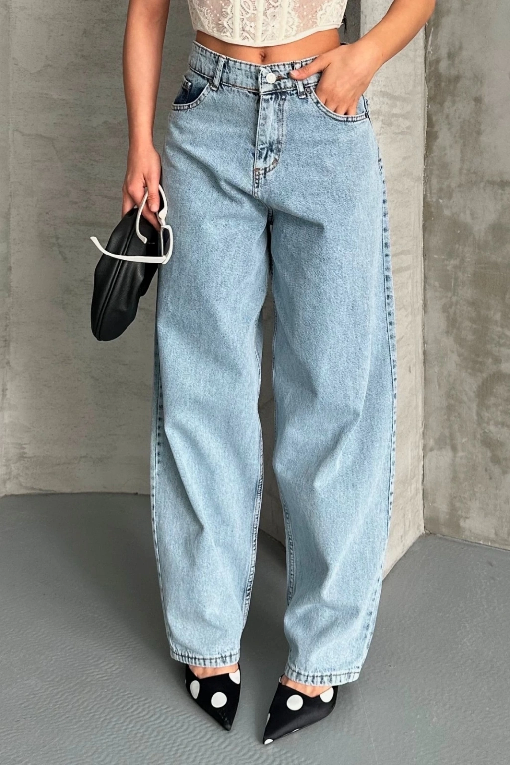 • Baggy kar yıkama buz mavi jeans pantolon d2007