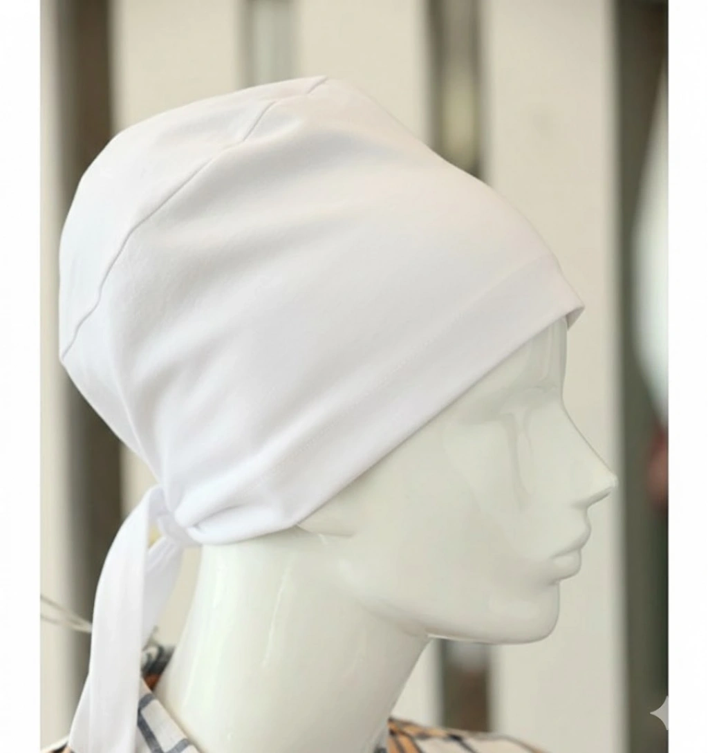 1 Adet Bağlamalı Tesettür Bone - Bağlamalı Bandana Beyaz
