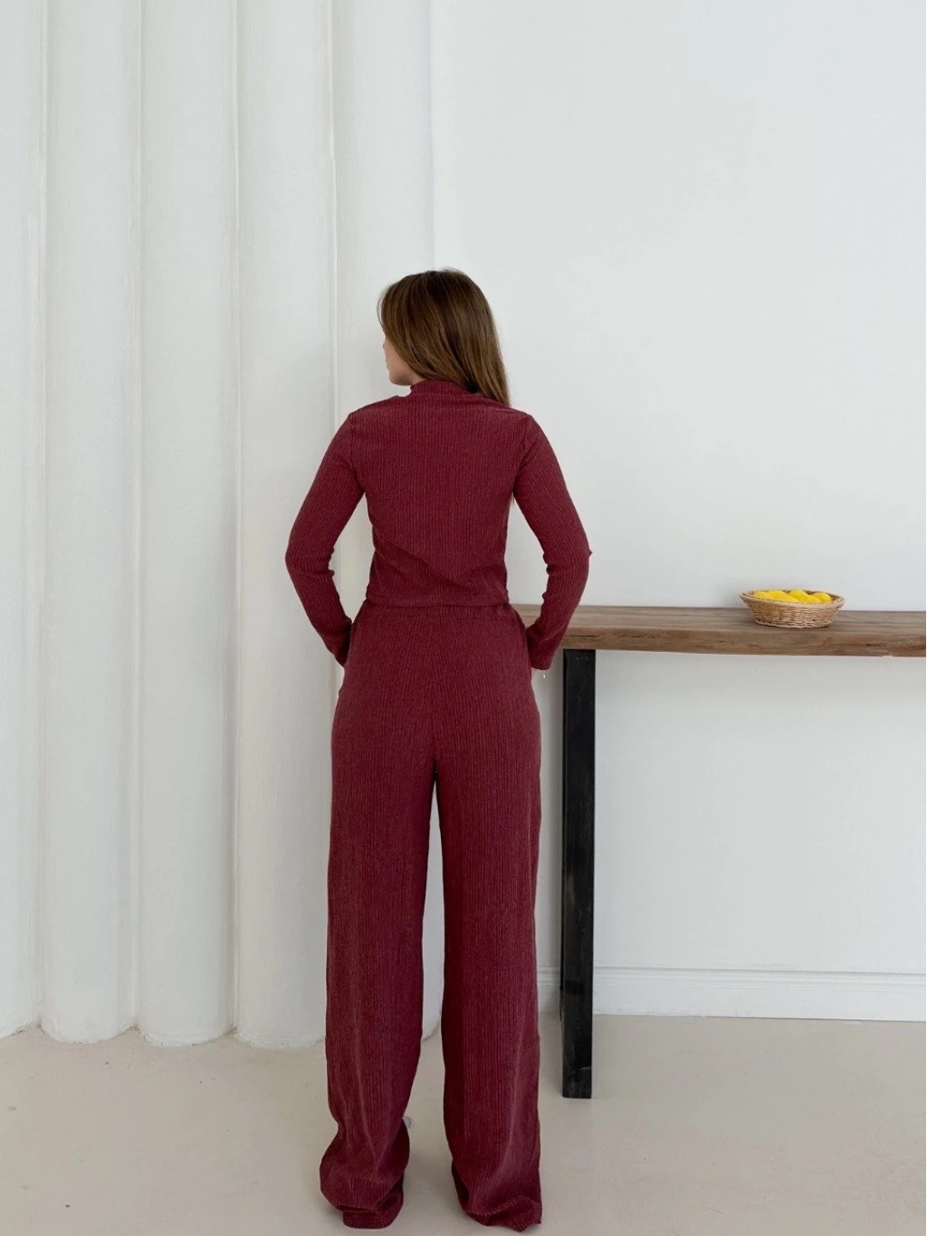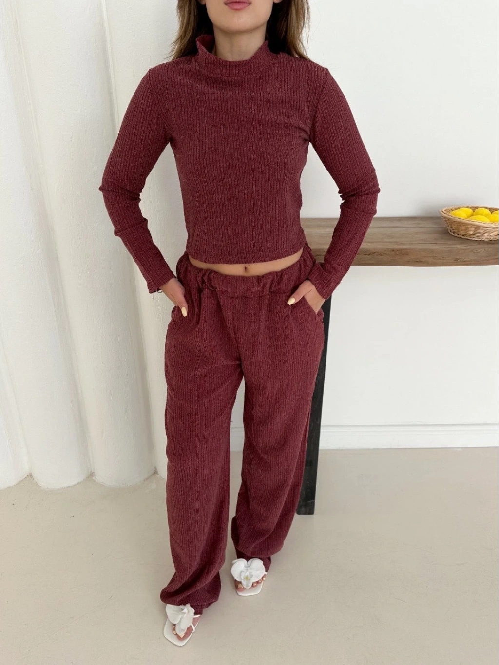 Balıkçı yaka örme takım bordo st265865, zarif ve şık bir görünüm sunar.