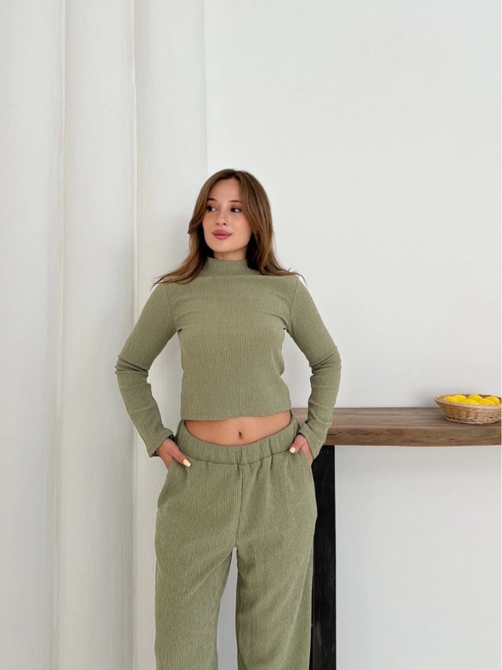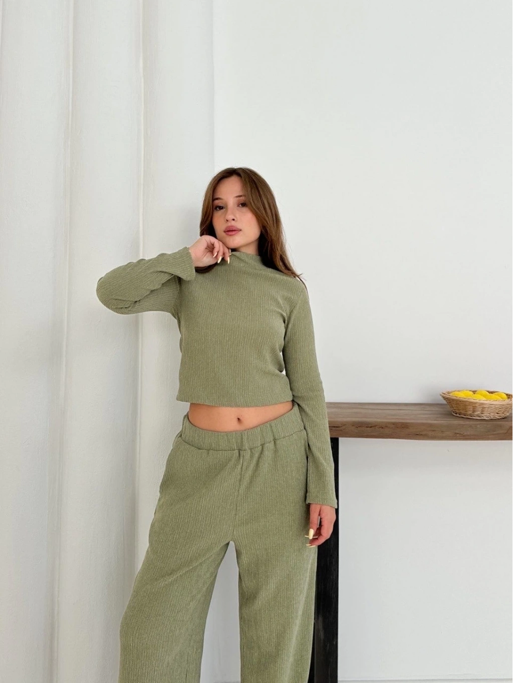 Günlük şıklığınızı tamamlayacak Balıkçı Yaka Örme Takım Mint, tarzınıza modern bir dokunuş katacak!