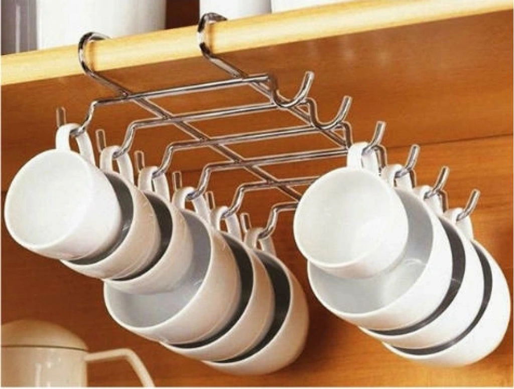 Mutfaklarınızda kupa bardak ve fincanlarınızı asabileceğiniz, dolap içi ve tezgah üstünde size yer kazandıran Portatif Bardak Askılığı: 10 Kancalı Bardak Organizer.