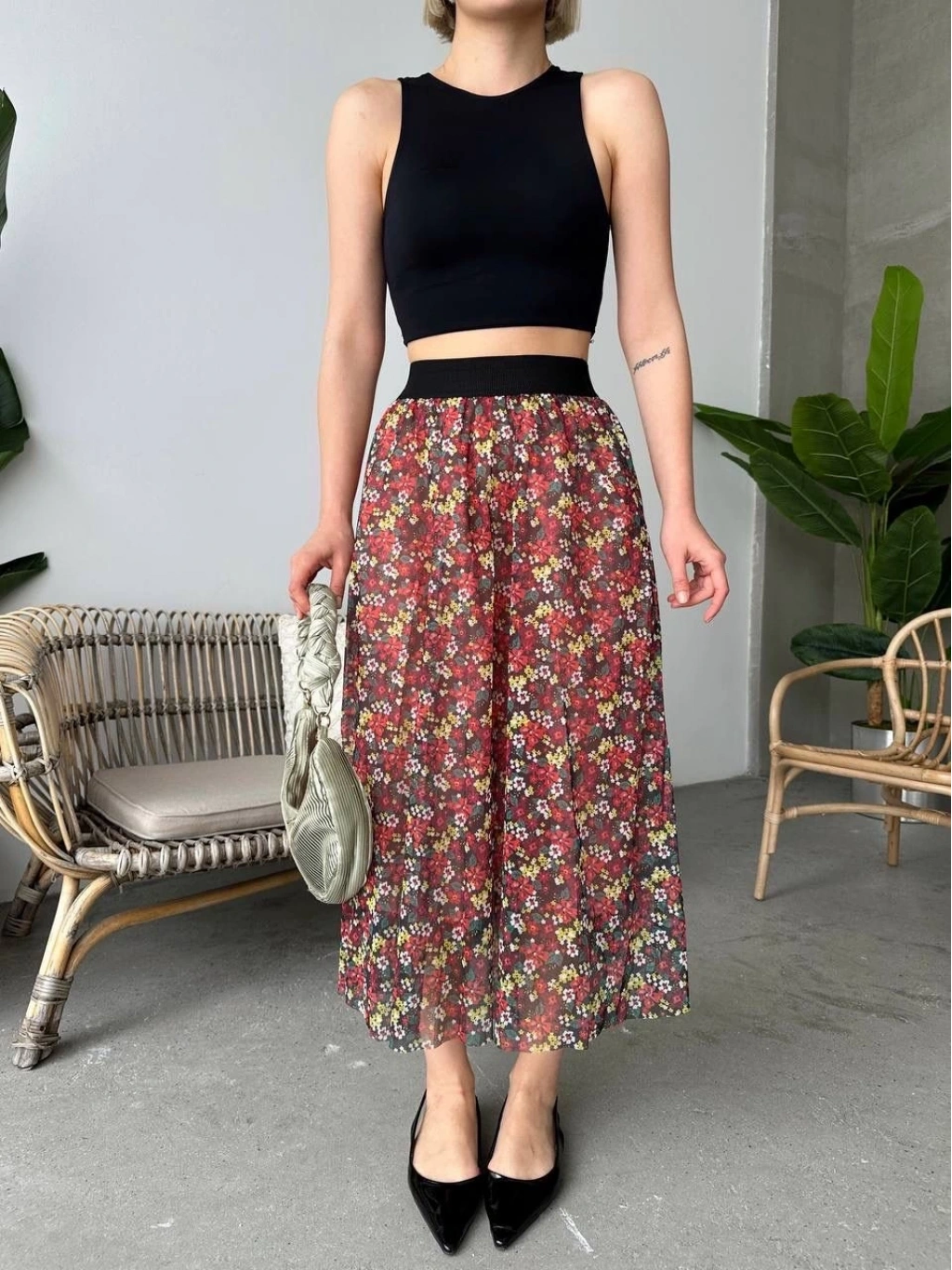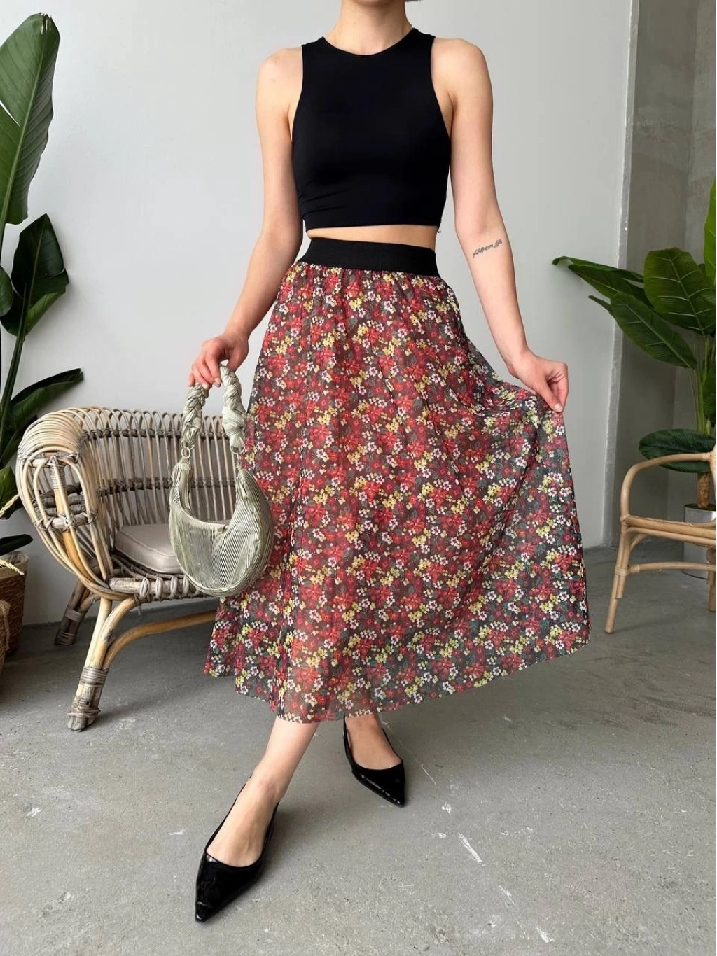 Bu baskılı astarlı uzun eteği günlük hayatta, özel davetlerde ya da iş ortamlarında gönül rahatlığıyla tercih edebilirsiniz.