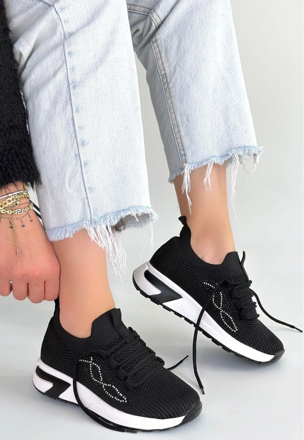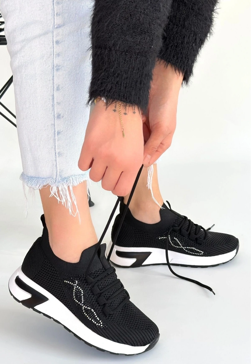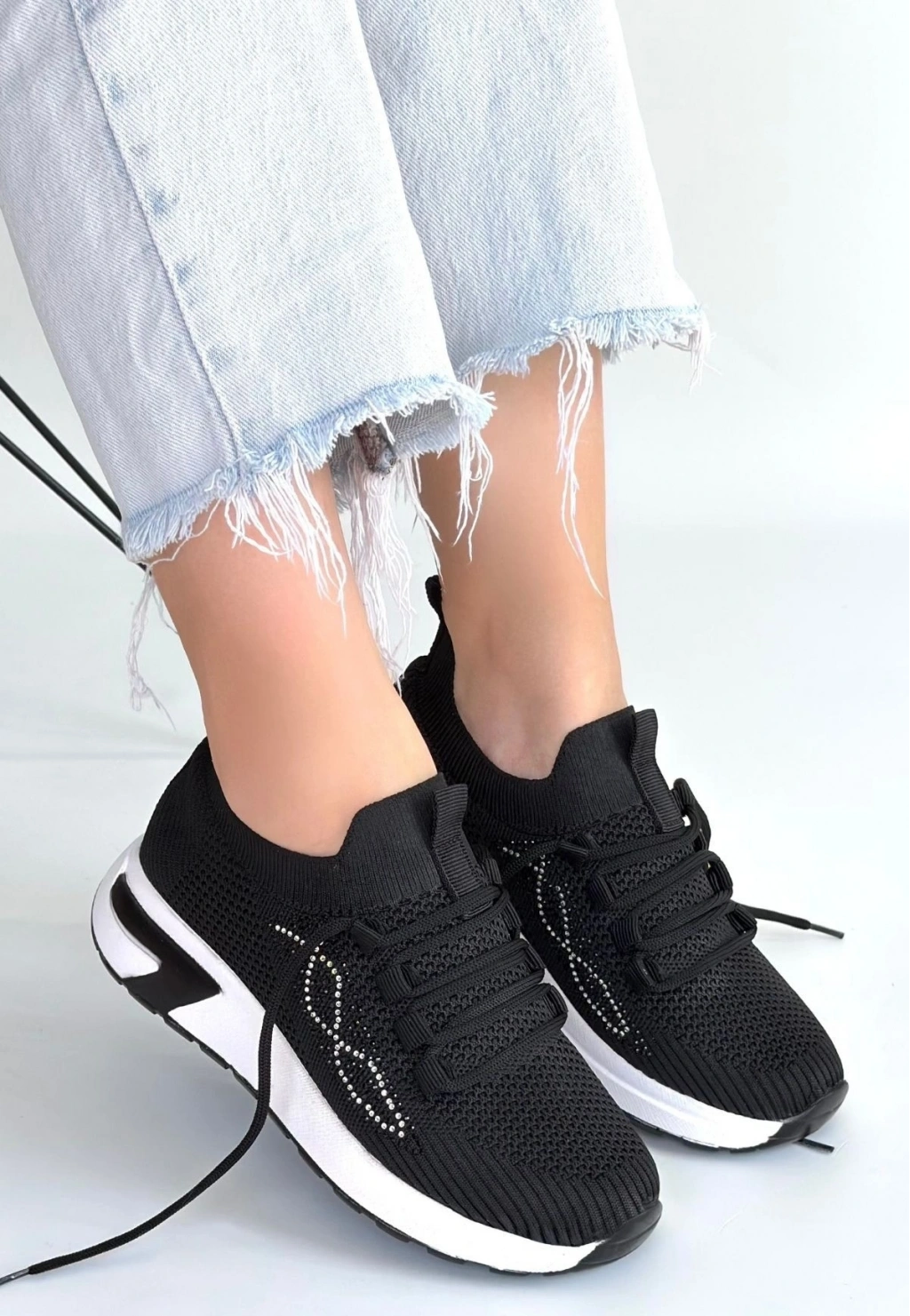 • Belan Siyah Triko Bağcıklı Spor Ayakkabı
