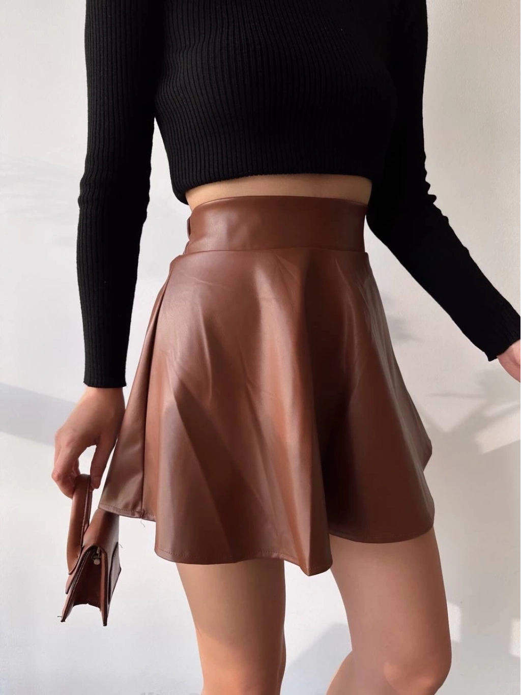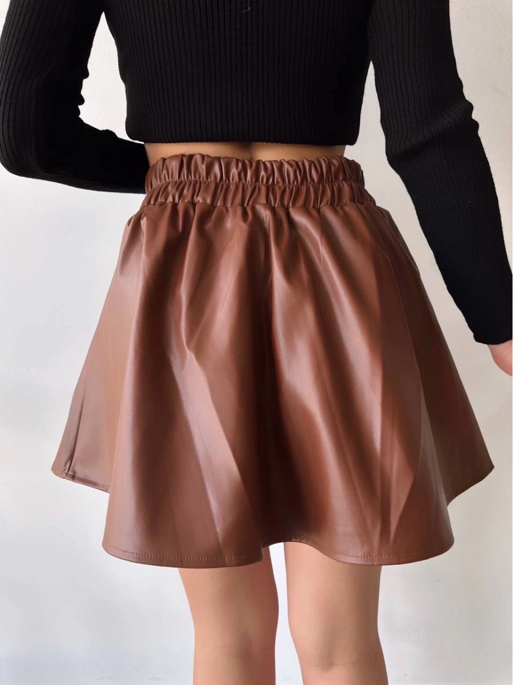 • Beli lastikli deri etek kahve s24599