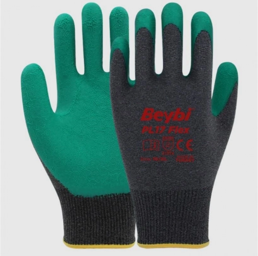 Beybi PL17 Flex Likralı İpten Örme Lateks Eldiven NO:9 Yeşil