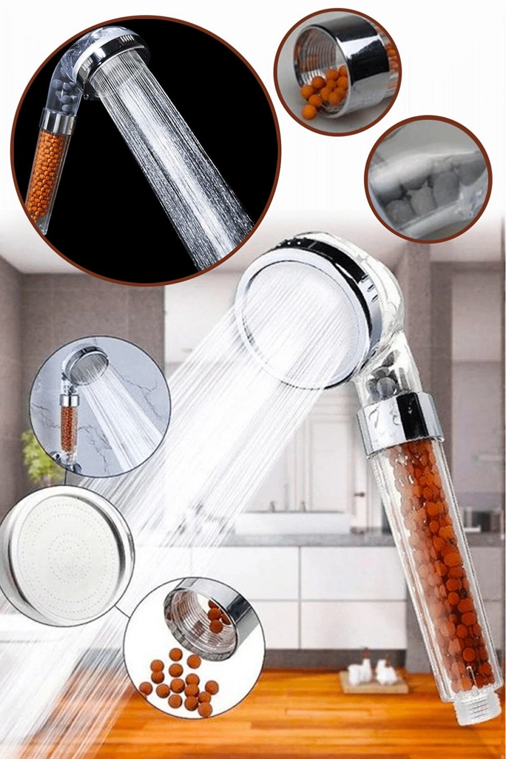 • Duş başlığının içinde bulunan zeolid, seramik gibi mineral ve doğal taşlar sayesinde saçlarınıza ve cilt sağlığınıza katkı üstüne katkı sağlıyor...