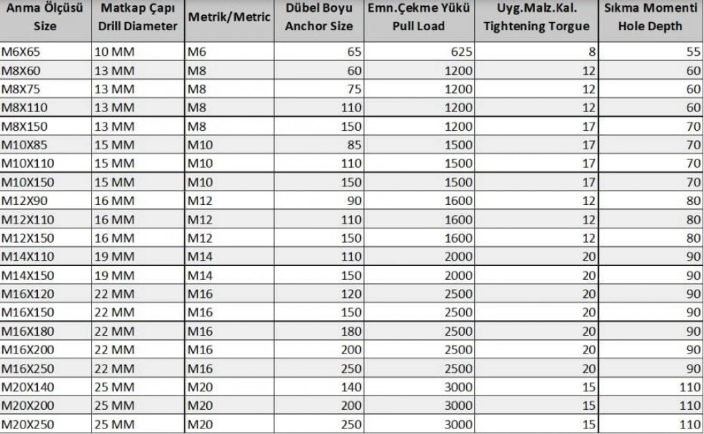 Civatalı Borulu Dübel : Beton kalitesi düşük olan yerlerde tercih edilen dübel çeşididir. Üzerindeki kovanı borudan imal edilmiştir.