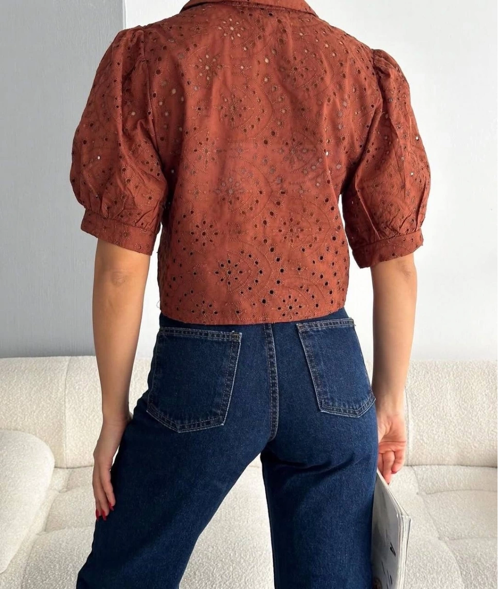 • Brodeli crop gömlek s1023