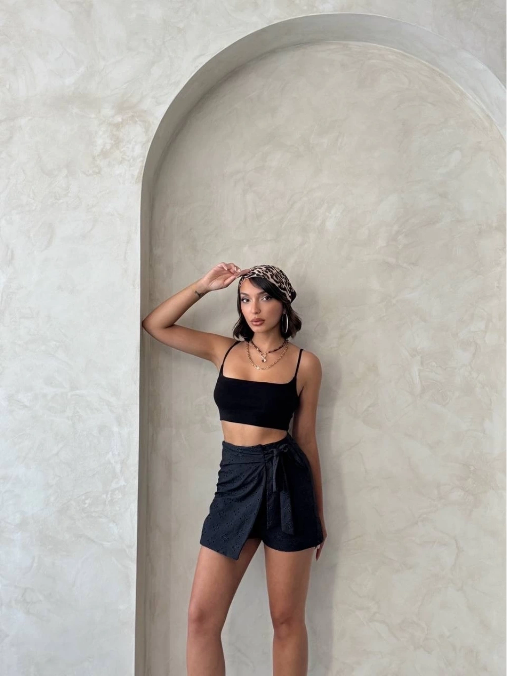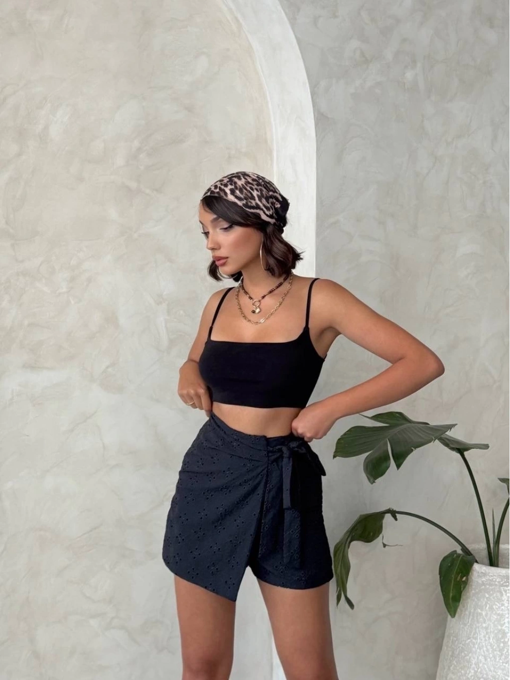 Brodeli şort etek s255075, şık ve rahat tasarımıyla öne çıkan bir parçadır.