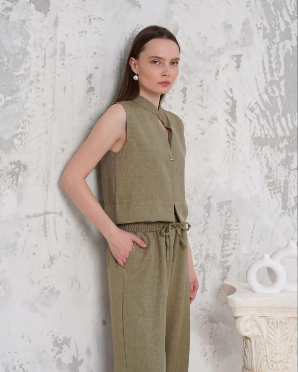 Yeni sezonda şıklık ve rahatlığı bir arada sunan Haki Broşlu Yelek Pantolon Takım, gardırobunuzun vazgeçilmezi olmaya aday! Detaylı dikişleri ve modern kesimiyle dikkat çeken bu takım ile her ortamda şık ve zarif bir görünüme sahip olabilirsiniz.