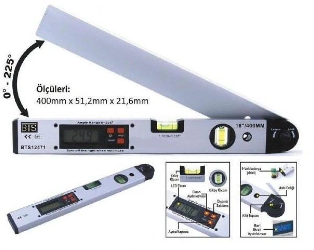 Bts 12471 Dijital Açı Ölçerli Su Terazisi 40 cm