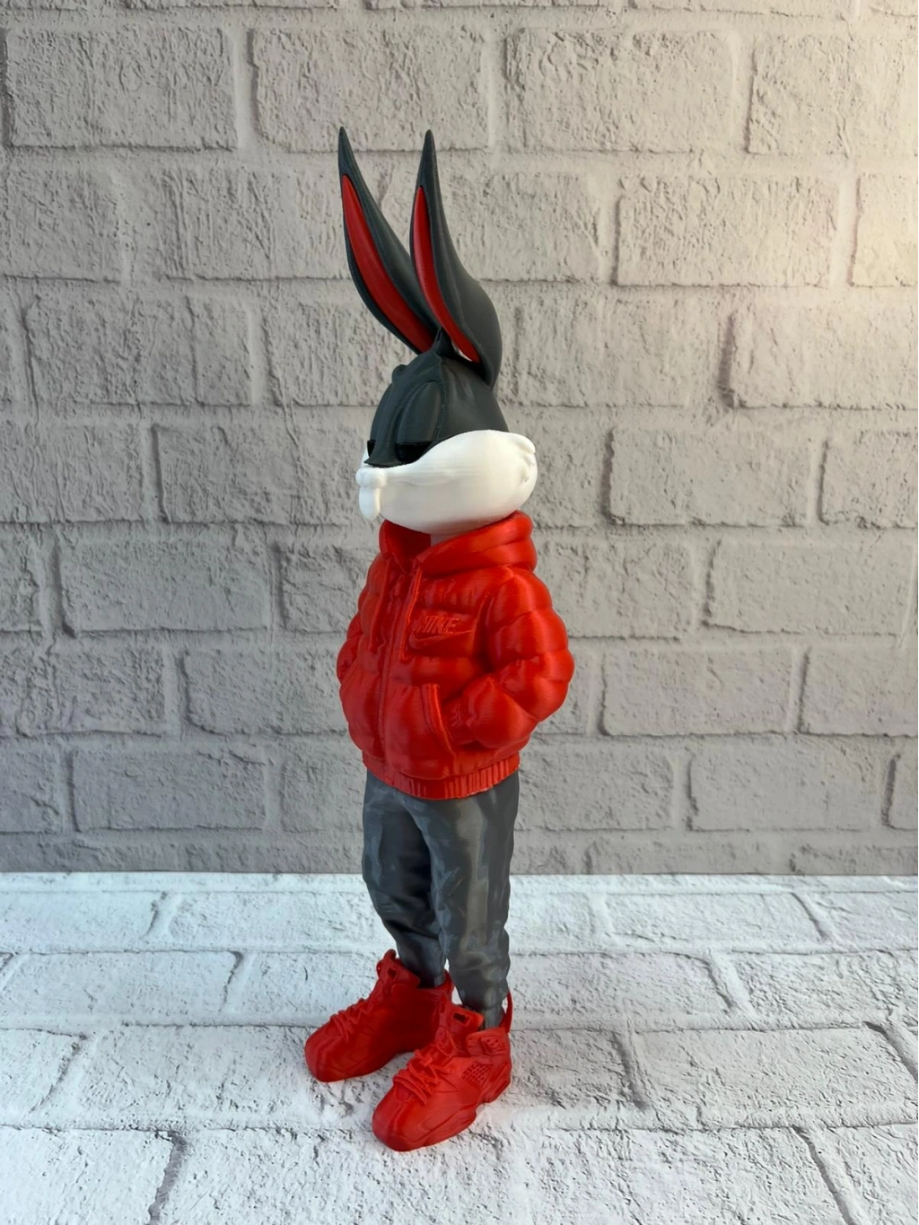 10×34 cm ölçülerindeki Bugs Bunny figürü, büyük boy tasarımıyla bulunduğu ortamda dikkat çekici bir dekoratif parça olarak öne çıkar. Modern kıyafet detayları ve ayakta duruşu sayesinde salon, genç odası veya çalışma alanlarında güçlü bir görsel etki yaratır. Raf, konsol ve masa üstü kullanımlar için idealdir.