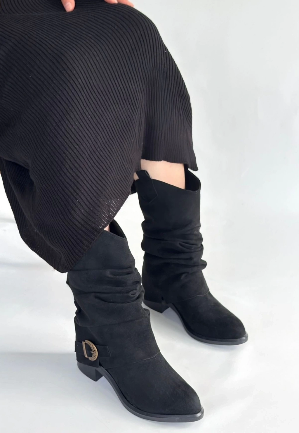 • Canty Siyah Süet Körüklü Topuklu Çizme