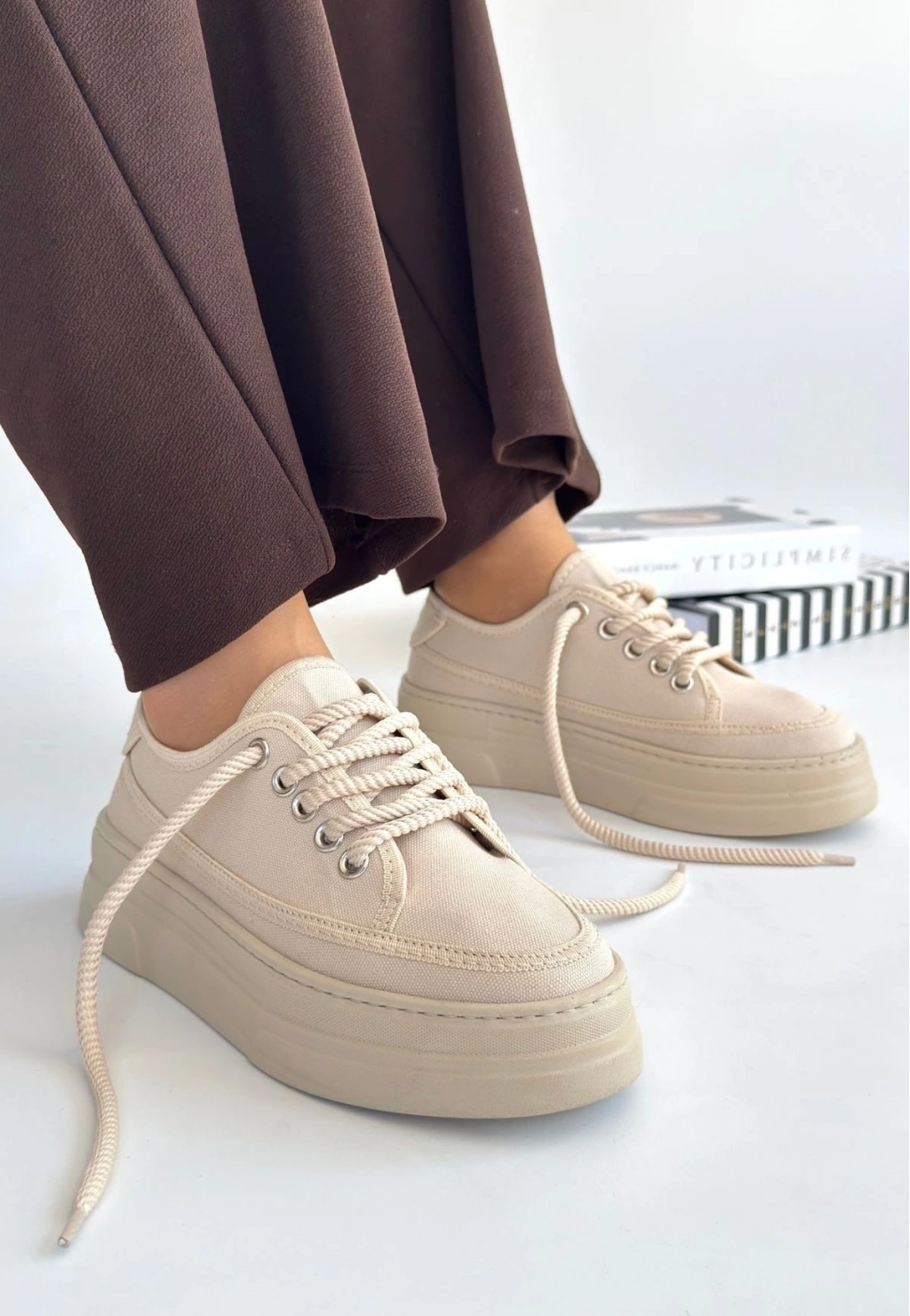 • Carin Bej Keten Bağcıklı Spor Ayakkabı