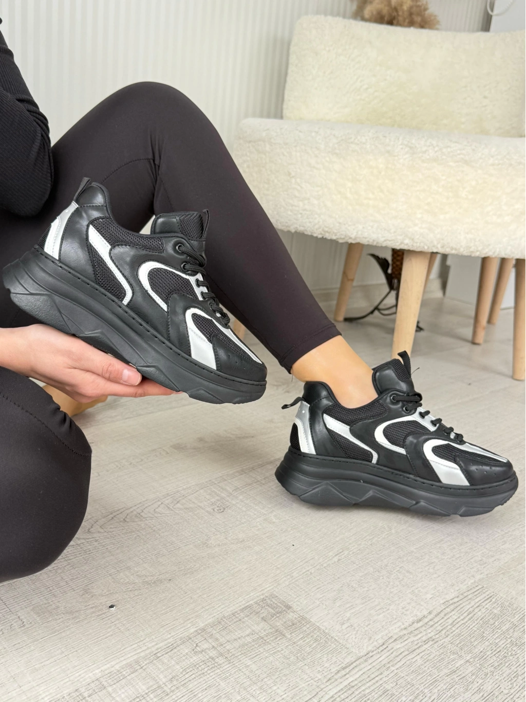 Cata Siyah Cilt Beyaz Detaylı Spor Ayakkabı