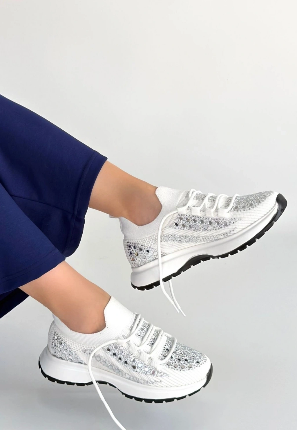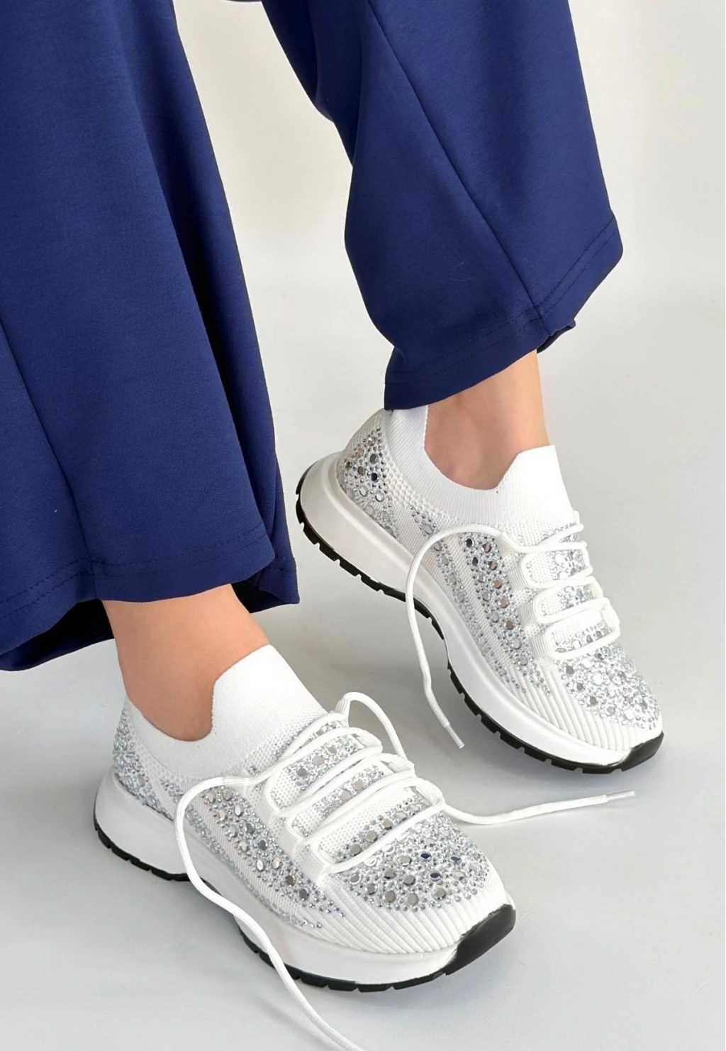 • Ceas Beyaz Triko Bağcıklı Spor Ayakkabı