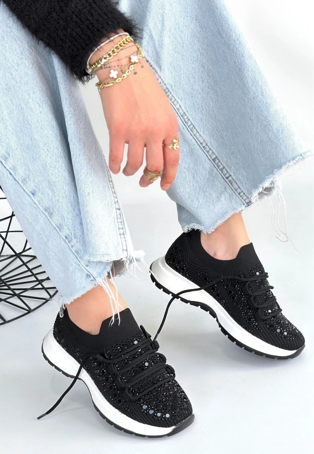 Ceas Siyah Triko Bağcıklı Spor Ayakkabı