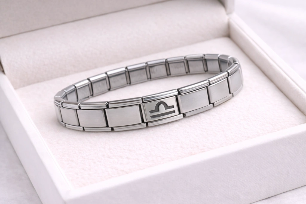 Zarafet, denge ve estetik anlayışıyla bilinen Terazi burcunu simgeleyen bu Çelik Nomination Bileklik, stiline anlam katmak isteyenler için özel olarak tasarlanmıştır.