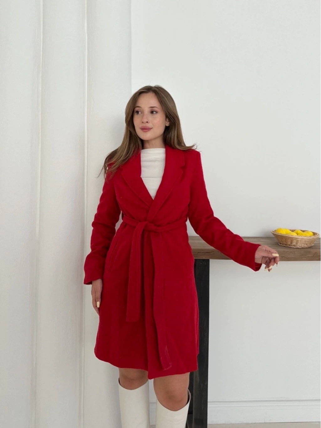 • Cepli kuşaklı kaşe kaban kırmızı st26458