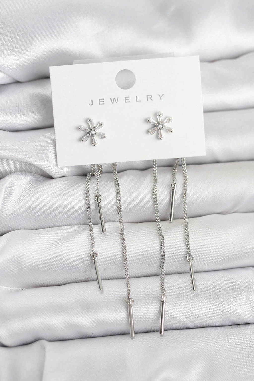Çiçek Model Gümüş Pirinç Sallantılı Kadın Küpe