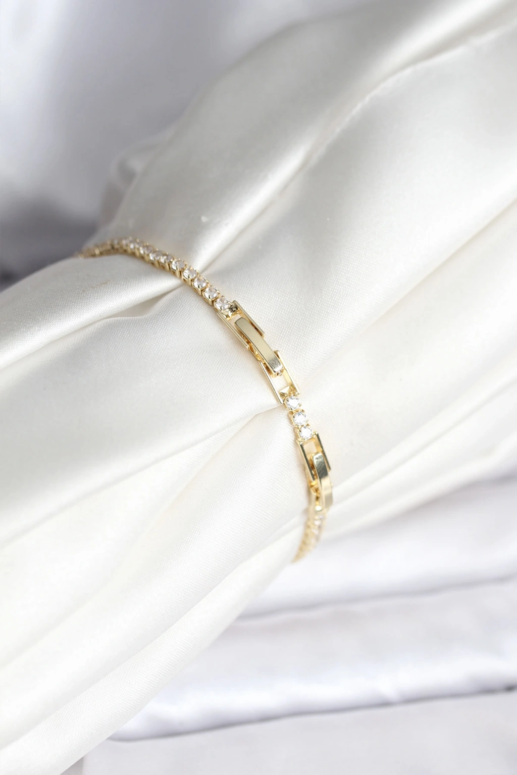 Çiçekli Model Zirkon Taşlı Gold Renk Su Yolu Kadın Bileklik