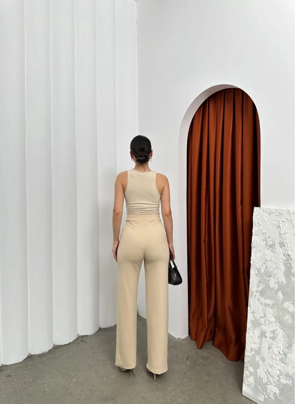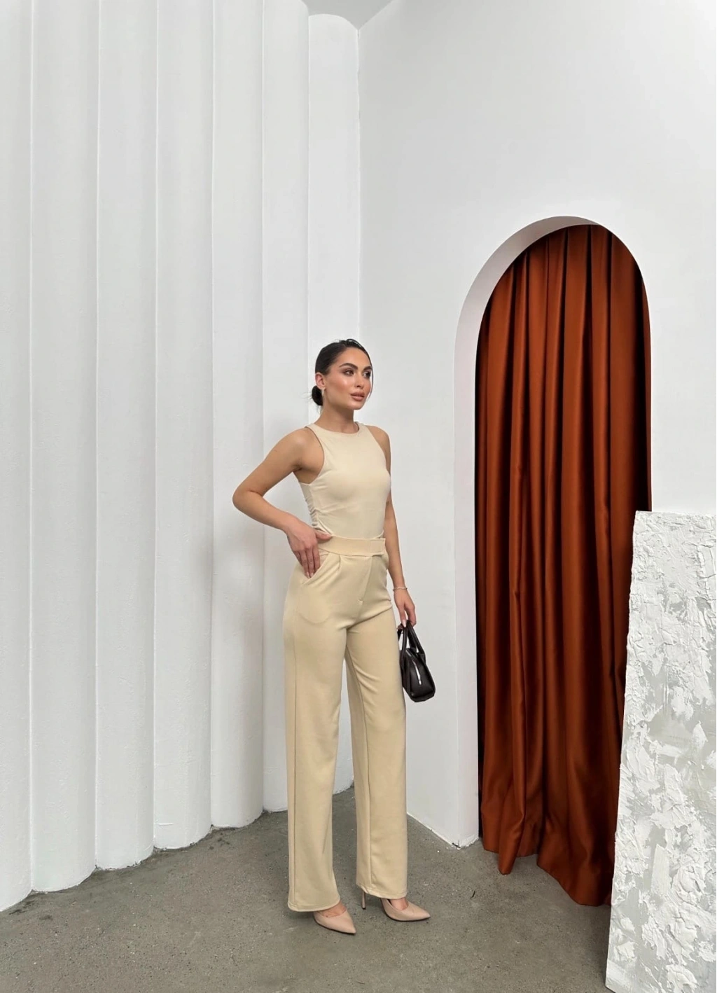 • Cırtlı pantolon krep bej pt