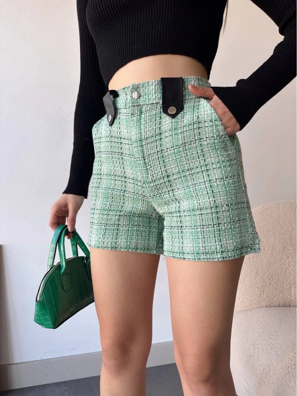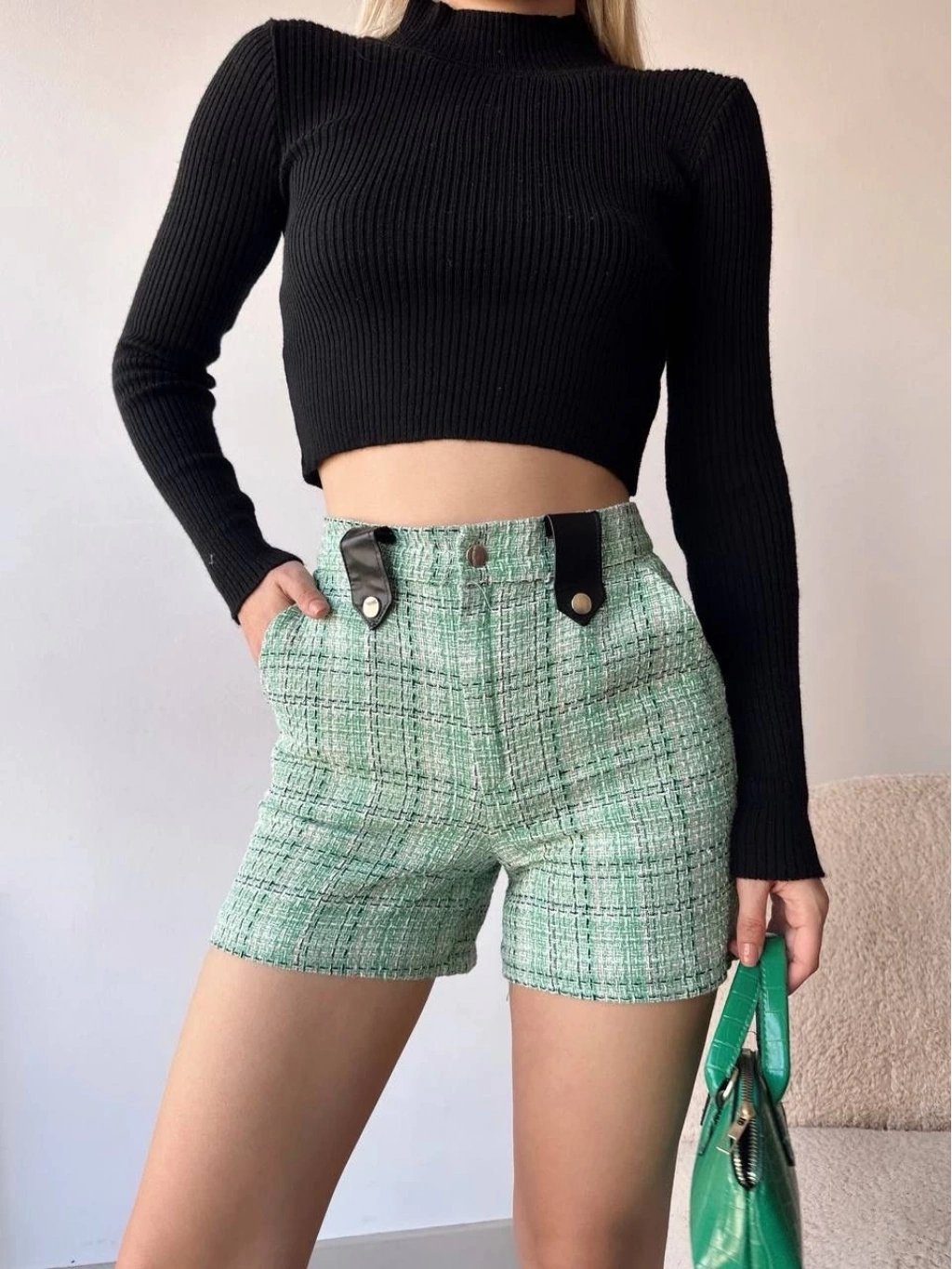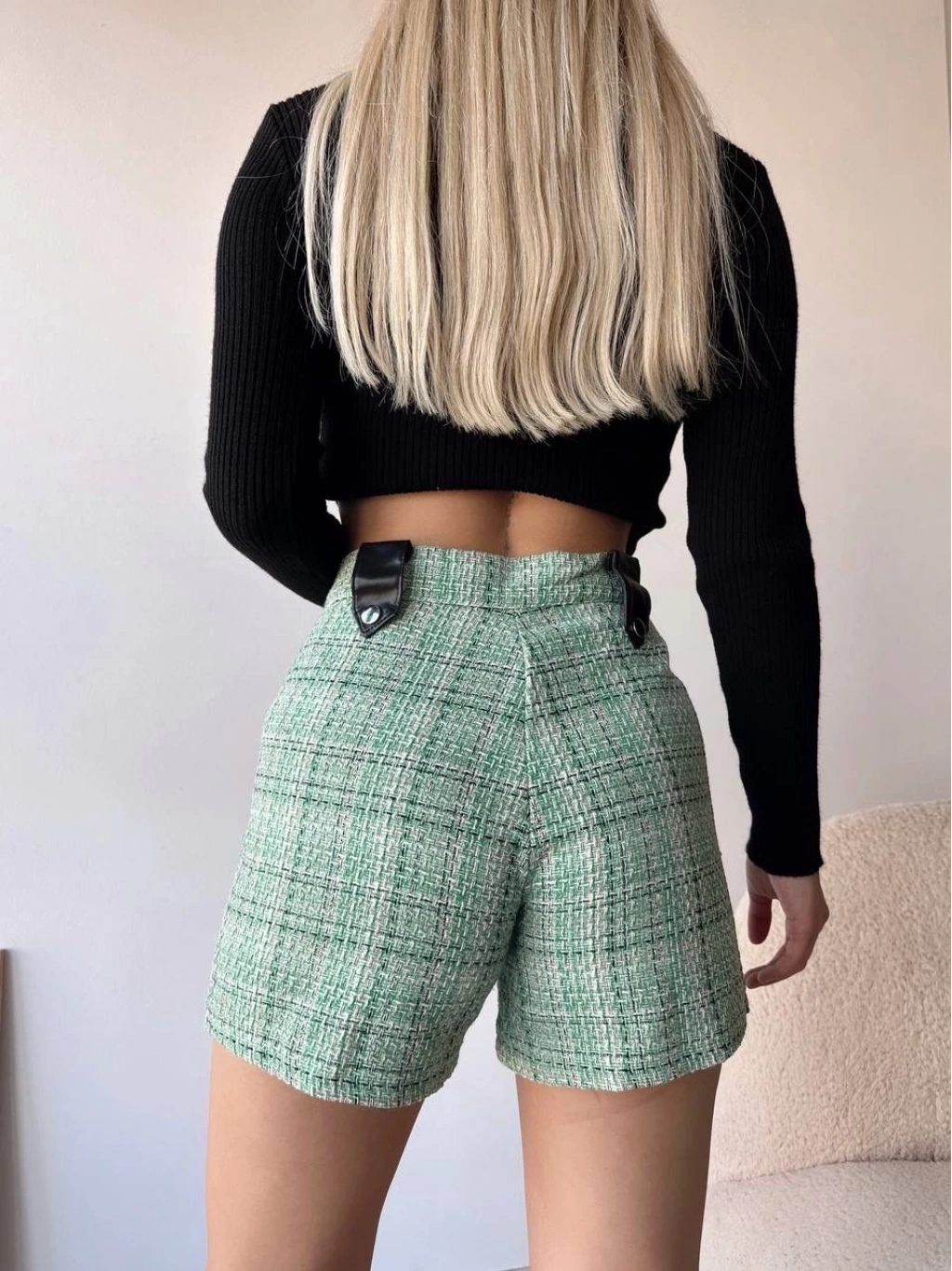Çıtçıtlı siyah köprü tüvit şort yeşil