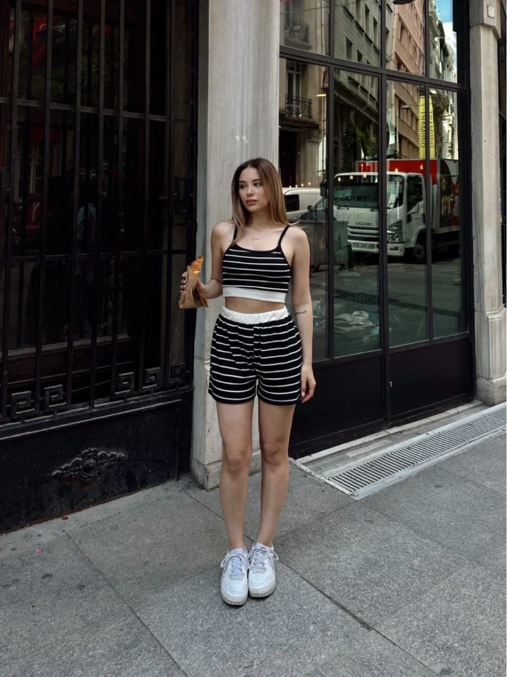 Şıklığı ve rahatlığı aynı anda sunan çizgili şortlu takım siyah s3978, gardırobunuzu tamamlayacak bir parça.